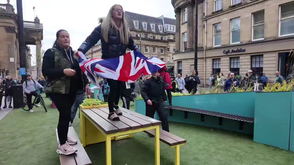 🇬🇧では「反移民」「愛国主義」「右派・保守派」のデモが頻繁にあるが、16歳の少女が誇りを持って掲げていた英国旗を取り上げられ丸められた。スターマー首相が「国旗が暴力や分断の象徴とされることを許さない」と表明した。リプ欄、イタリアの未来だ、英国は終わったなと。