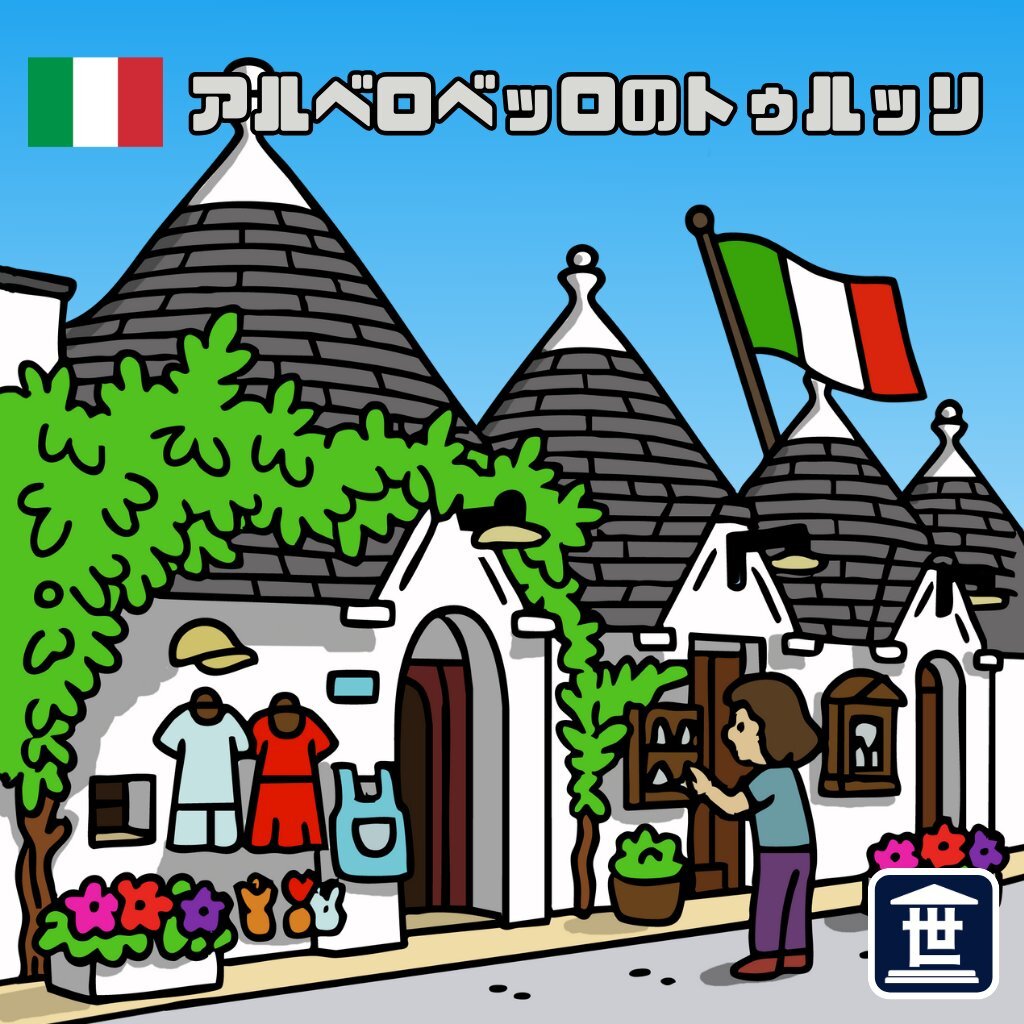 世界遺産シール「アルベロベッロのトゥルッリ」 とんがり屋根の可愛い建物がいっぱい!アルベロベッロの旧市街には伝統的な住居トゥルッリが1500軒以上も並んでいるぞ。 #イタリア #アルベロベッロ #トゥルッリ #世界遺産 #italy #alberobello worldheritage-mania.com/seal-alberobel… pic.x.com/Ek7XCbid8j