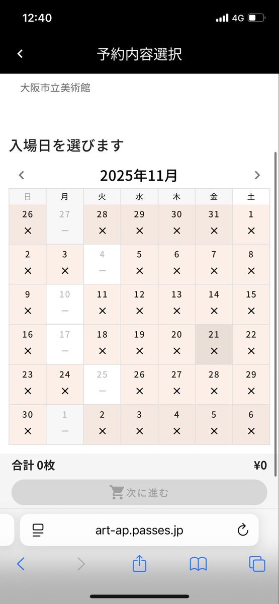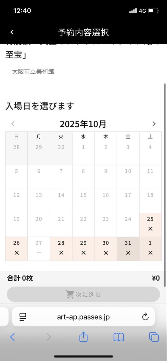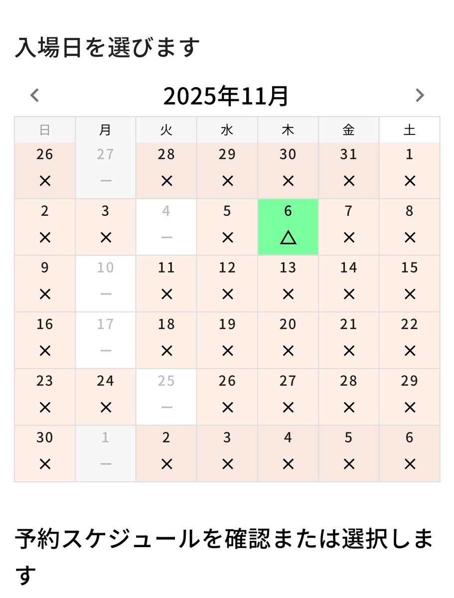 たまたま見てたら11/6だけ3枚空き枠あったけど、たぶん秒で埋まってた。カレンダーは✕表記だったから、根気強く調べてたらキャンセルとか支払い忘れとかありそう。 #イタリア館の至宝展 pic.x.com/EQH43oPOmr