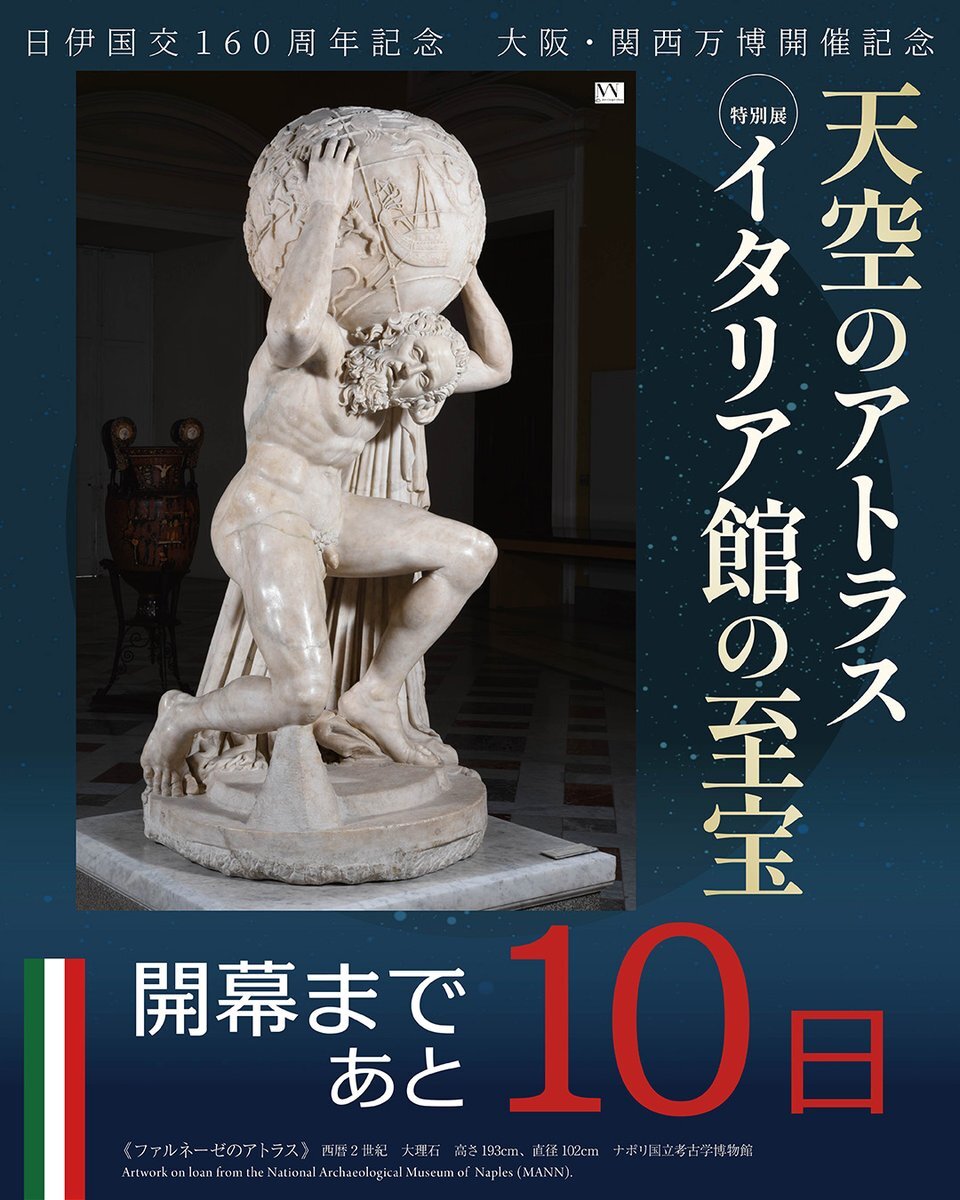 \祝!開催決定!#イタリア館の至宝展/ 日伊国交160周年記念 大阪・関西万博開催記念 特別展「天空のアトラス イタリア館の至宝」 2026年に日本とイタリアが国交160周年を迎えることを祝い、「ファルネーゼのアトラス」などが展示されます!
