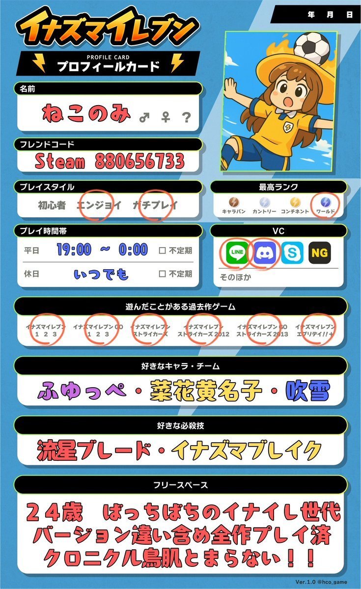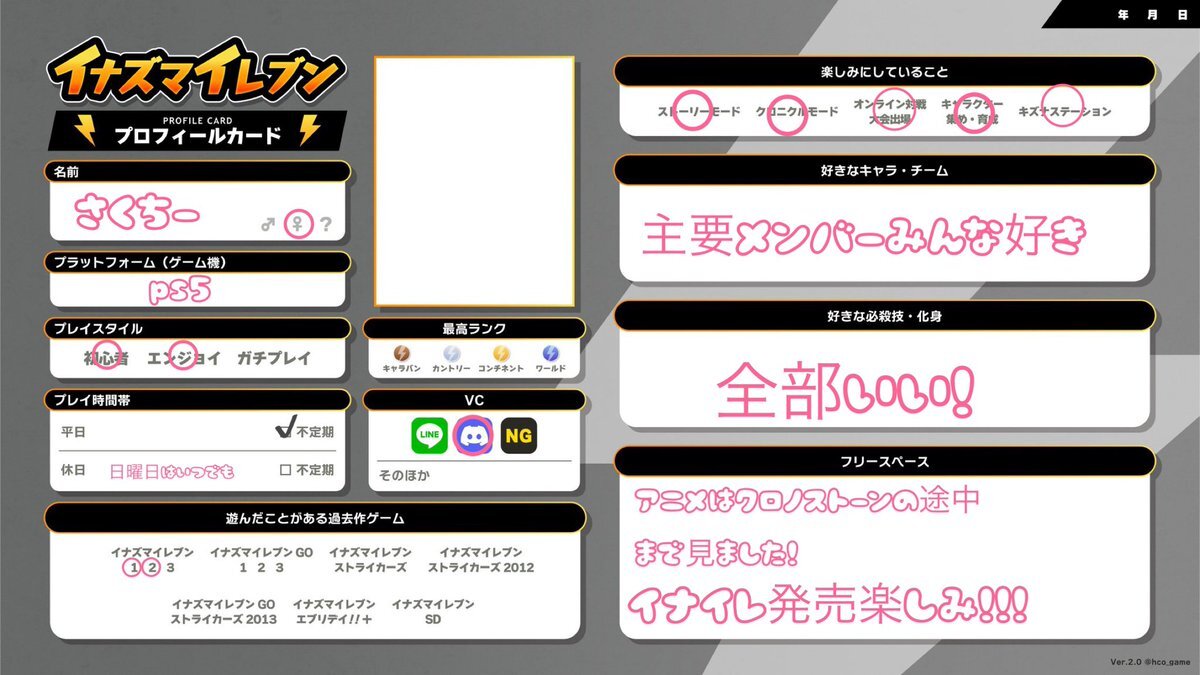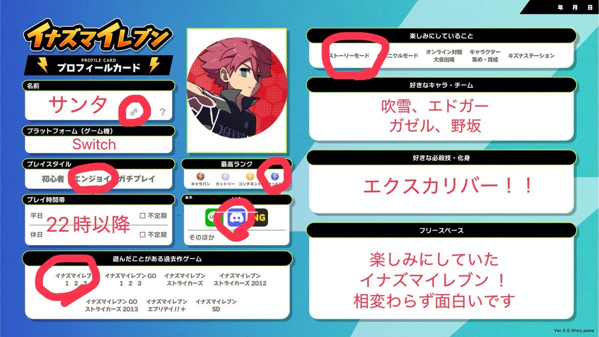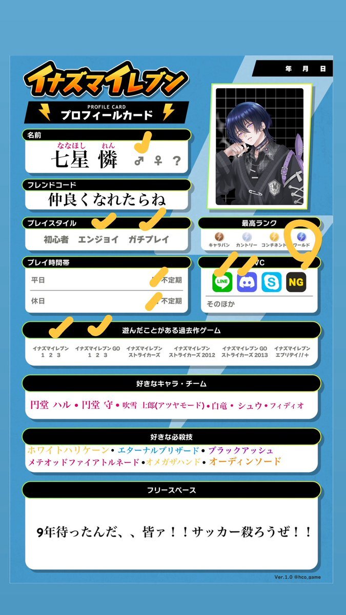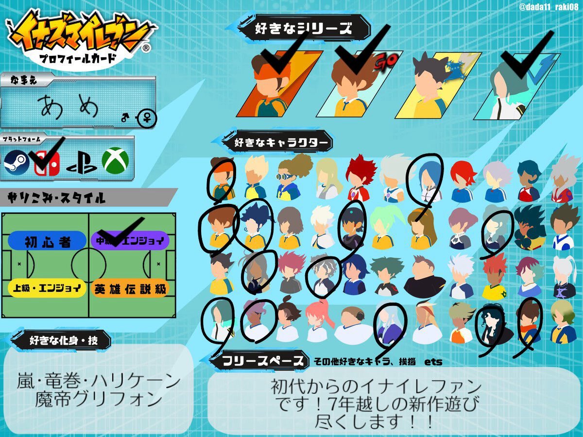 プロフィールカード書きました いまだに対戦のシステムとか理解できないですがそのうち最強イレブン作って対戦したいと思ってます!! よかったら仲良くしてください! #イナイレ  #イナズマイレブン  #イナイレ好きさんと繋がりたい pic.x.com/ef9UIDXYRy