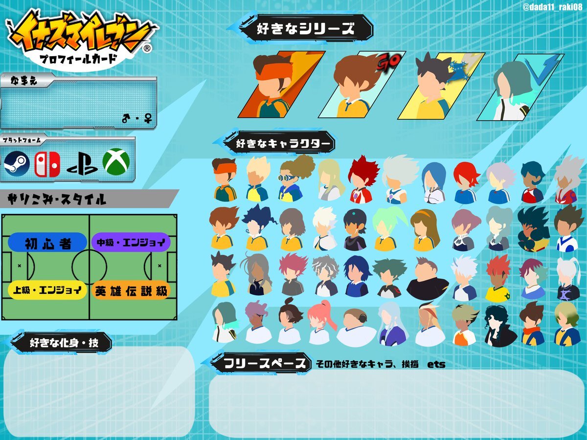 プロフィール作ってみた ヤニカスで良ければ仲良くなってくれ イナイレの事なら無限と話せます #イナズマイレブン #イナイレ #イナズマイレブン好きと繋がりたい #イナイレ好きさんと繋がりたい pic.x.com/7sl2LfLbsH