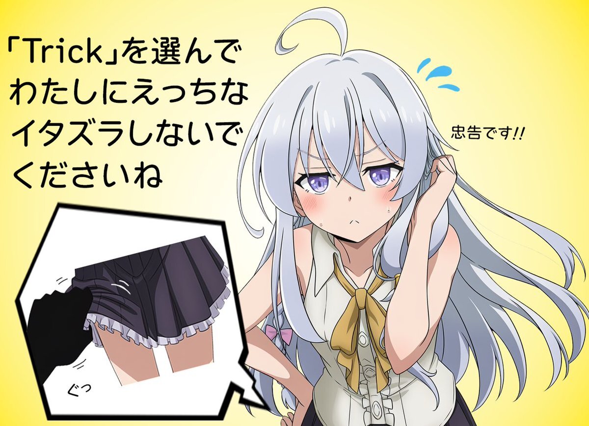 『TRICK』 ◀︎◀︎ Choice 👍 TREAT お菓子は要らないので、 イレイナさんにイタズラしちゃいます😆 イレイナさんの…👀💕︎︎ #魔女の旅々 #魔女の旅々はいいぞ #魔女の旅々はえーで #イレイナ pic.x.com/5s4jO9G8om
