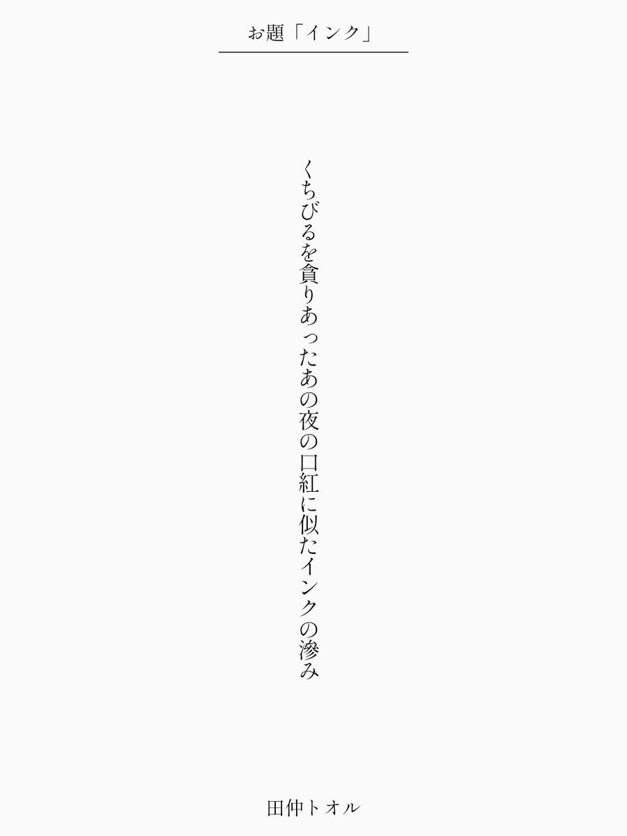 くちびるを貪りあったあの夜の口紅に似たインクの滲み/田仲トオル #毎日文学 #短歌 #インクをテーマに作品をつくる pic.x.com/9pbYJsLgpg x.com/tankazine/stat…