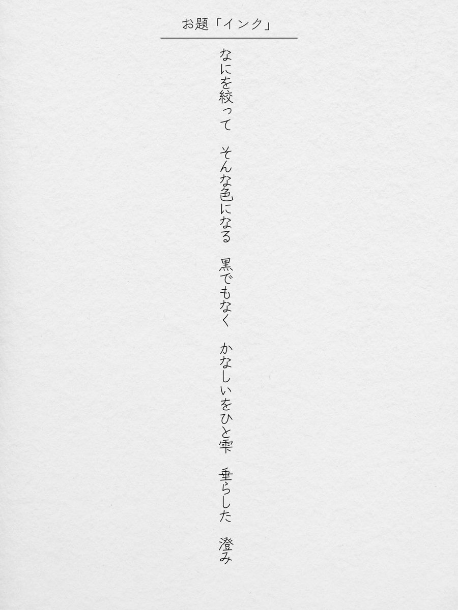 テーマ「インク」 書き出しを躊躇う内に滴落ち 滲むインクで察してほしい #毎日文学 #短歌 #インクをテーマに作品をつくる x.com/tankazine/stat…