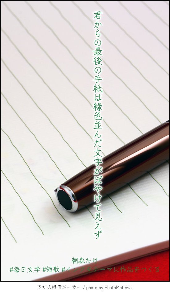 君からの最後の手紙は緑色並んだ文字がぼやけて見えず #毎日文学 #短歌 #インクをテーマに作品をつくる pic.x.com/psMr2pkn7V x.com/tankazine/stat…