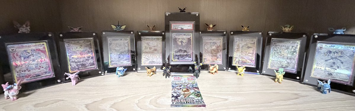 今回のポケモン一番くじF賞 ブイズでやりたかったこと叶った✨️ 見にくいけど見て欲しいです😌 改めてテラスタルフェス、夢を沢山見せてくれてありがとう🎁 #テラスタルフェス #イーブイ好きと繋がりたい pic.x.com/hg8Eym5eqB