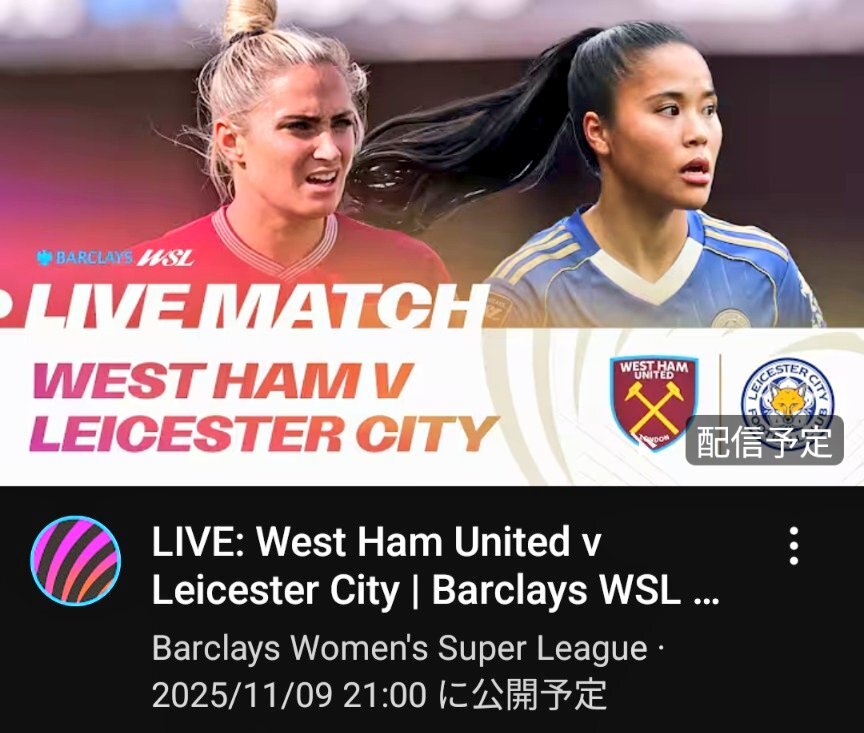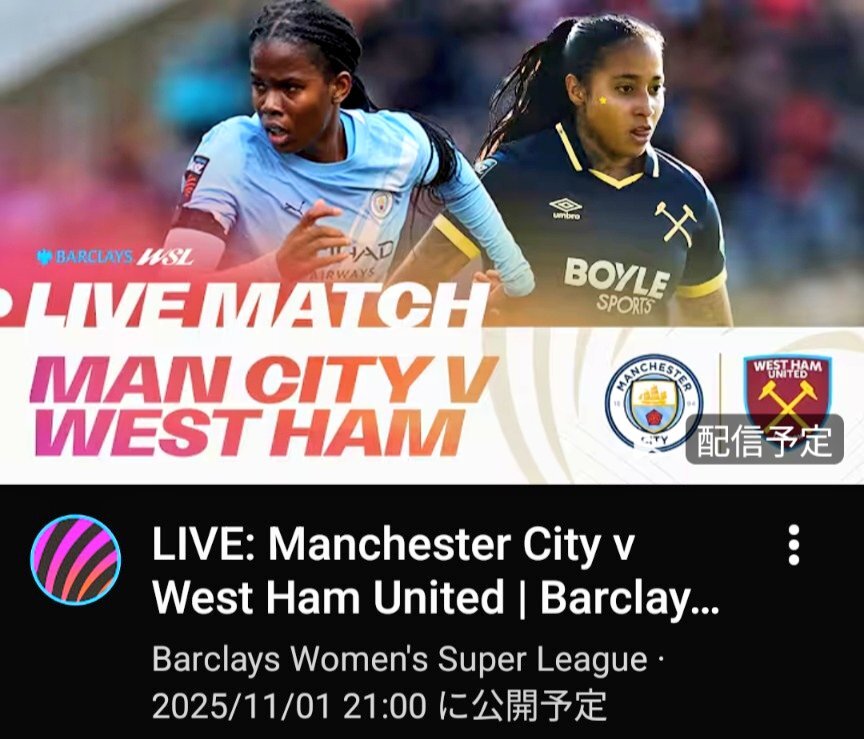 今日 の 2 1 : 0 0 ⚽▶️Barclays W S L で #マンチェスター・シティWFC 🆚 #ウェストハム・ユナイテッドFCウィメン が #Live配信予定 #BarclaysWSL.#サッカー #Football.#BarclaysWSL2025 #遠藤優.#長谷川唯.#藤野あおば.#山下杏也加.#植木理子 youtube.com/live/grhEFJl9Q… pic.x.com/3vJKHVEBps
