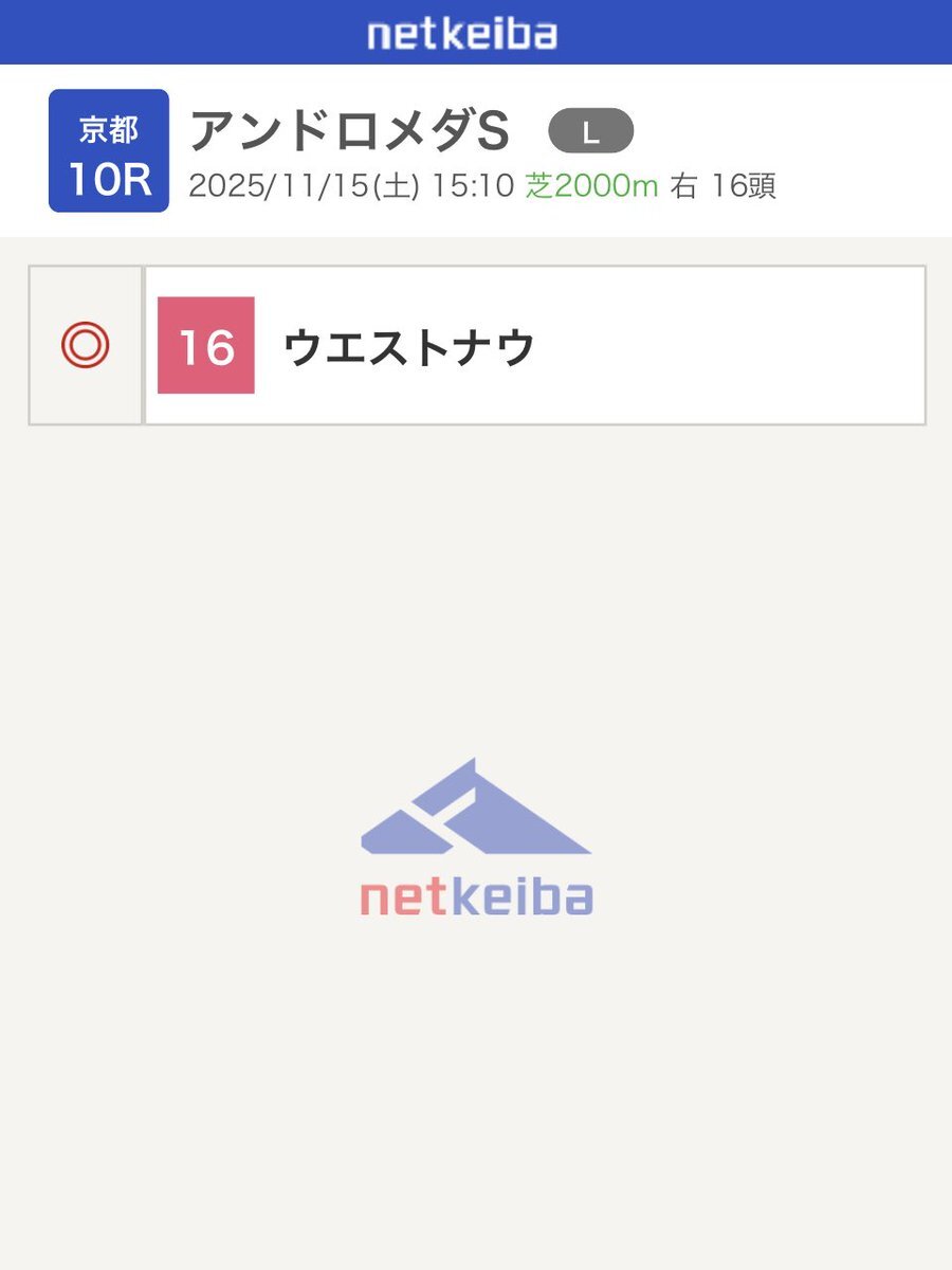 京都10R アンドロメダS ◎16ウエストナウ(5人気)🥇 今日はBlushing Groomすぎるな京都芝🌱 ウエストナウおめでとう!!! #ウエストナウ #アンドロメダS pic.x.com/ta44gKzCZA