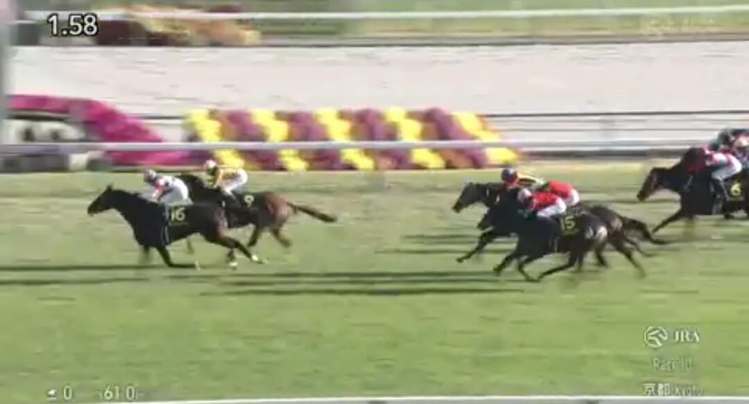 京都10R、直線で外から抜け出したのは9番シェイクユアハート。 しかしさらにその外から抜け出した16番のウエストナウが最後シェイクユアハートを捉えて勝利。 #京都10R #ウエストナウ #シェイクユアハート pic.x.com/HmVfXZfkIv