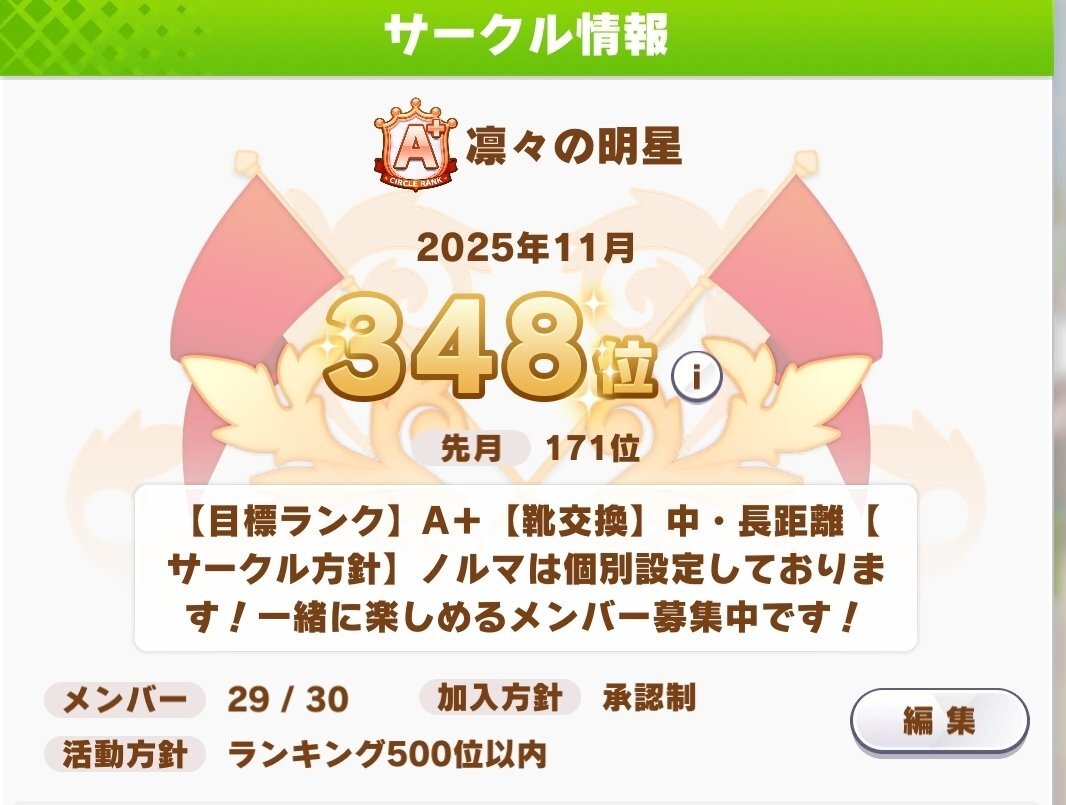 11月度のメンバーを募集致します! A+ランク安定サークルです(*^^*) まったりな雰囲気で、メンバー内 でも交流してます!! 3000万月間平均でノルマ獲得 できる方探してます! 希望の方はリプお願い致します! #ウマ娘 #ウマ娘サークル #ウマ娘サークル勧誘 #ウマ娘サークルメンバー募集 pic.x.com/6SrpeEWDHu