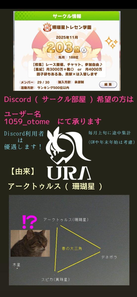 Discord 1059_otome ID 419789544 珊瑚星トレセン学園 A+ランク 4年以上継続中 【ゲームから直接の申請】 プロフィールに月の育成目安を記入してあると採用率up 合言葉『春の大三角』も添えると更に採用率up #ウマ娘サークルメンバー募集中 #ウマ娘サークル募集 #ウマ娘 #ウマ娘サークル勧誘 pic.x.com/hWRjfrHqjZ