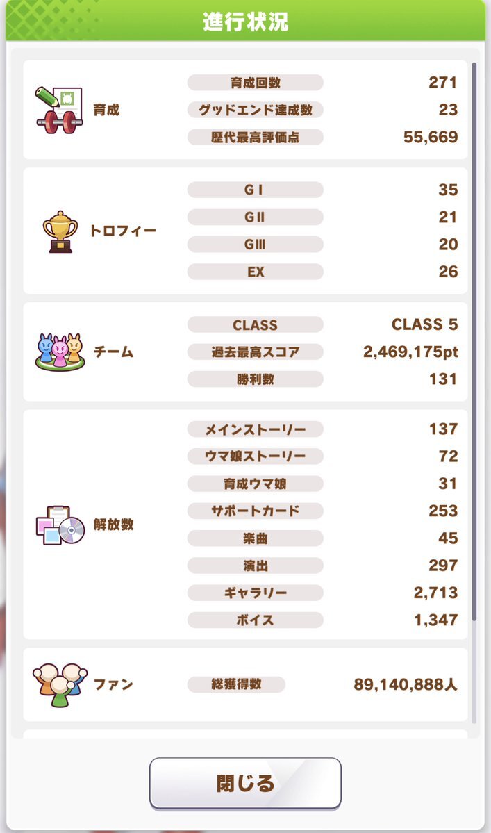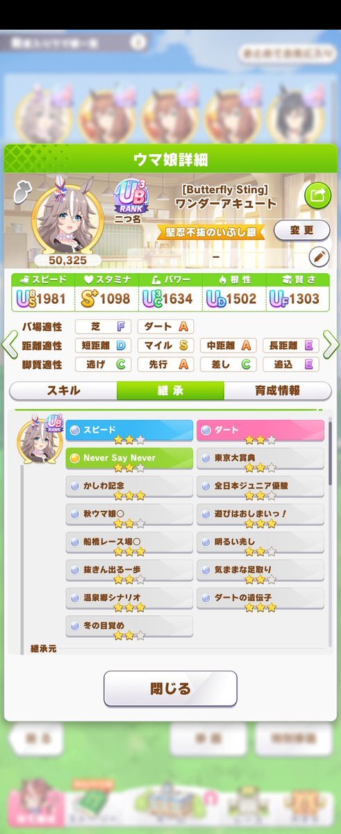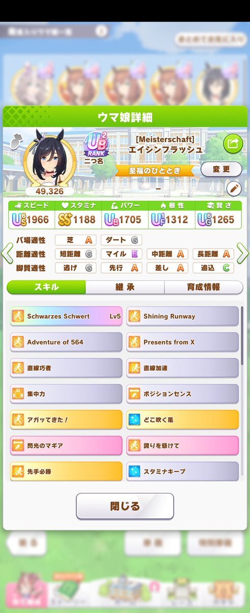 なんだかどの娘育成してもイマイチ🤣 あと少しが漏れない💧 まぁそもそもサポカが1年近く前のもんなんでカードパワーが違いすぎなんよな🤷♂️ UAまで行けたら御の字だわ。 コツコツ上振れ頼みで遊びます。 #ウマ娘プリティーダービー #ウマ娘好きと繋がりたい #ウマ娘サークル勧誘待ち pic.x.com/r1zReHulTu