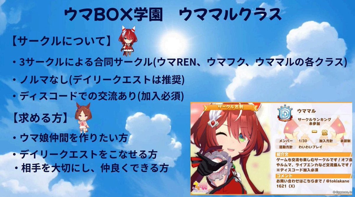 【サークルメンバー募集】 新しく新設するウママルクラスのメンバー募集です! 皆で交流しながら楽しむサークルで、オフ会なども積極的にやってます✨ お気軽にご連絡ください♪ #ウマ娘好きと繋がりたい #ウマ娘サークル勧誘待ち #ウマ娘サークルメンバー募集 pic.x.com/ZK3AUyw0aT