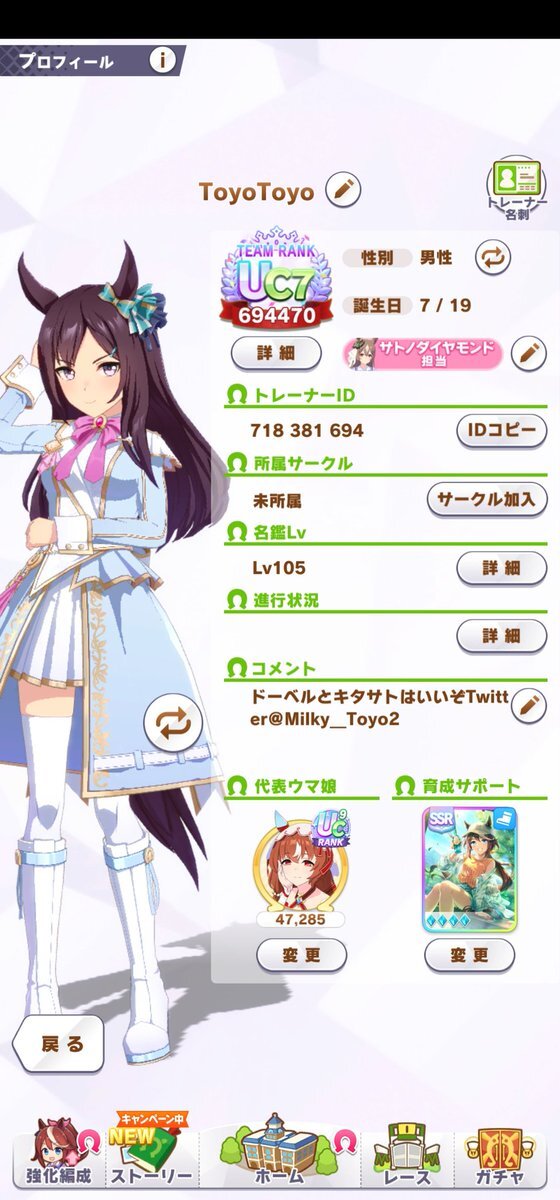 #ウマ娘 3日程前から始めました💪🐱 サークル探してます! 他ゲームと並走しているので ノルマは低めで🔰 チャットで質問できる環境のある サークルを探しております👀 毎日デイリー、育成してます🙌 #ウマ娘フレンド募集 #ウマ娘サークル勧誘待ち #ウマ娘サークル募集 #ウマ娘サークルメンバー募集 pic.x.com/rCwW7DbVpn