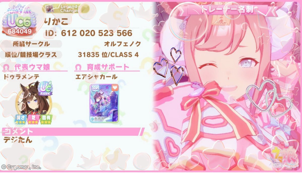 デジたん最推しの超多推しです🌈🎀 すごくまったりですがよろしければ仲良くしてください~🎶🌟 全反応巡回後無言フォローでお迎えいたします🥕 #ウマ娘好きと繋がりたい #ウマ娘女子部 pic.x.com/XEgISeFUt0