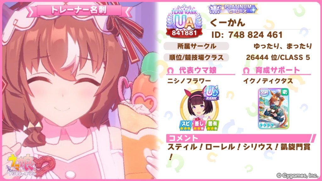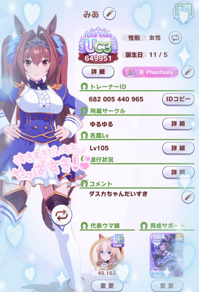 今年から始めた新米トレーナーです!( ՞. ̫.՞) 最推し⇒フリオーソちゃん 地雷等ないので、よければ仲良くしてください🙌🏻🎀無言フォローも大歓迎です!💖 #ウマ娘好きと繋がりたい #ウマ娘プリティーダービー #ウマ娘女子部 pic.x.com/v8qSatsK81