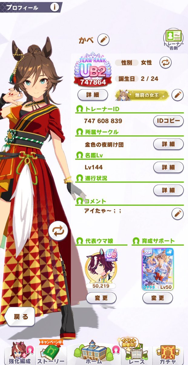 1ヶ月程前に始めた新人トレーナー🔰です カツラギエースとディクタストライカ推し フレンド0人なのでお友達募集中です! 同担拒否地雷無し・全反応巡回ᥫᩣ ̖́- #ウマ娘フレンド募集中 #ウマ娘好きと繋がりたい #ウマ娘絵描きさんと繋がりたい #ウマ娘女子部 pic.x.com/JQxCmRplvc