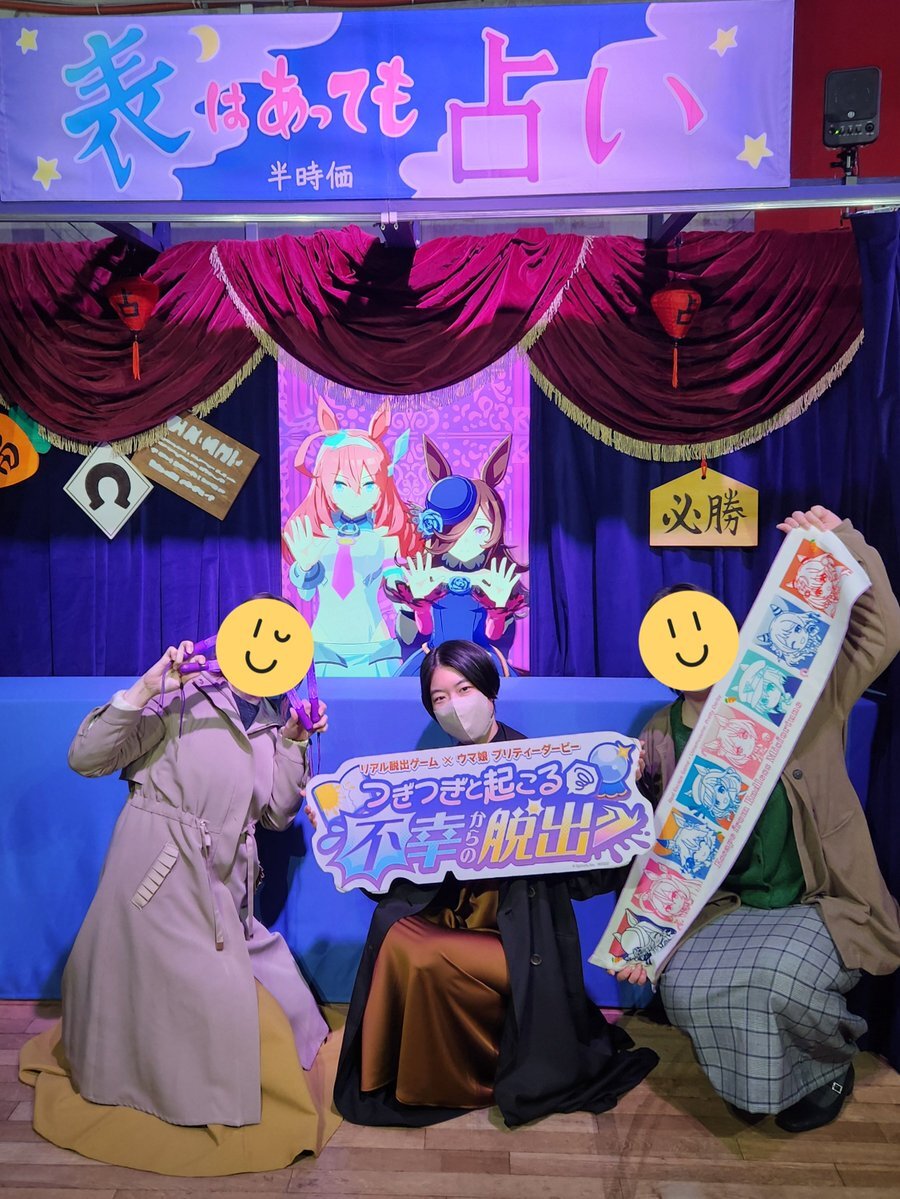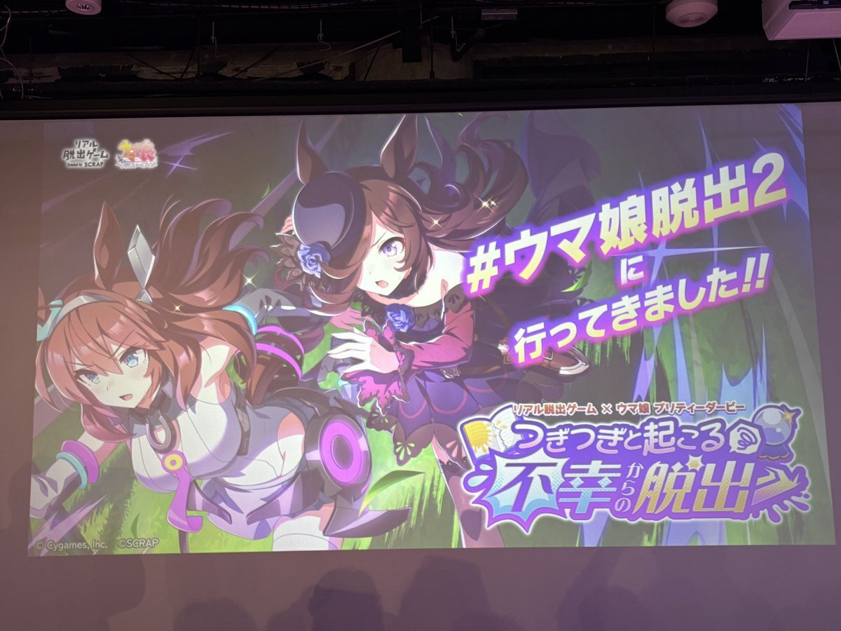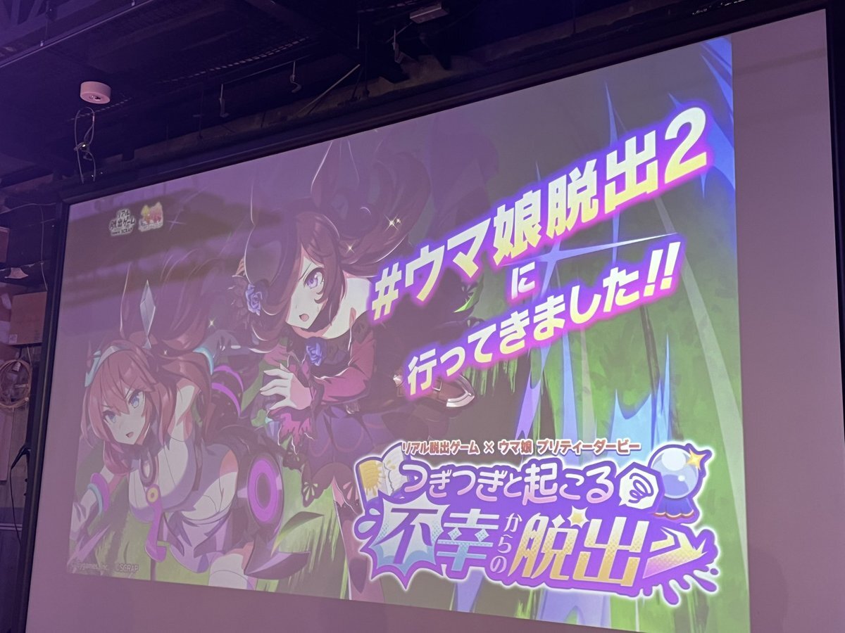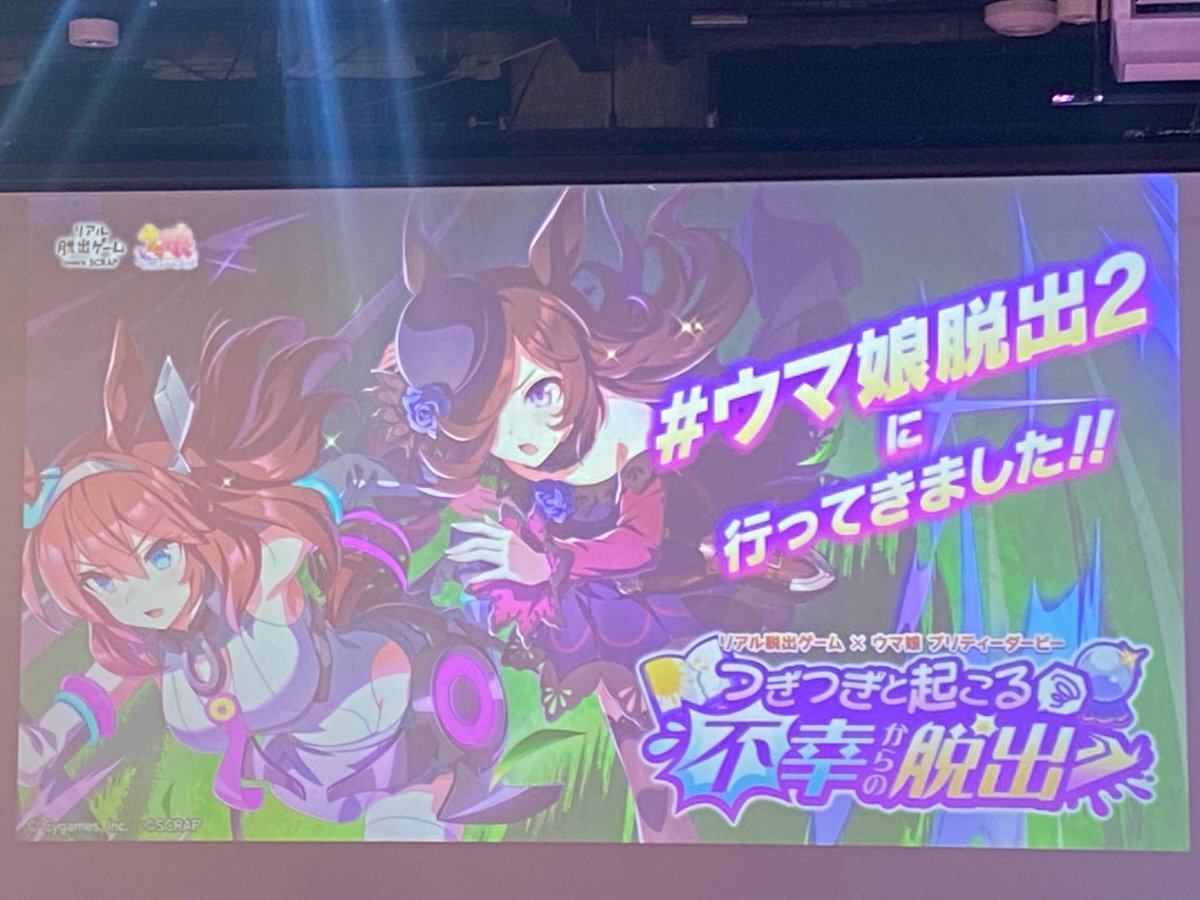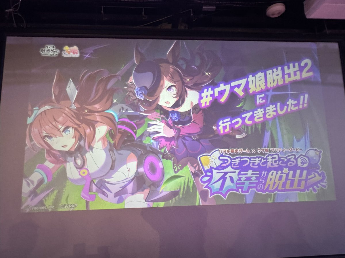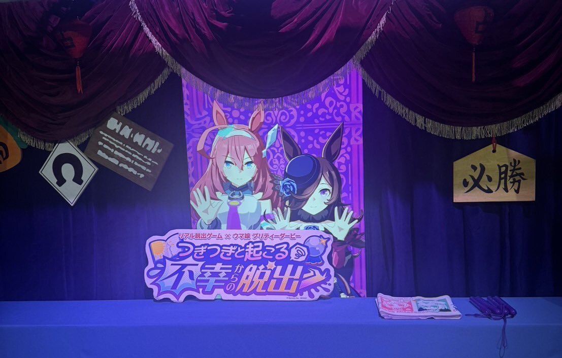 『つぎつぎと起こる不幸からの脱出』成功🐎 今回は予習せずだったけど、お話もキャラも分かりやすく、ウマ娘ちゃんたちも可愛くて良かった✨ ウイニングライブの曲をマスターしてなかったことが心残り…次回があったらコールの字幕をつけてください🙏 #ウマ娘脱出2 #リアル脱出ゲーム心斎橋 pic.x.com/saoHnNZw2o