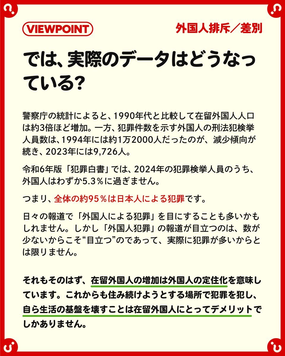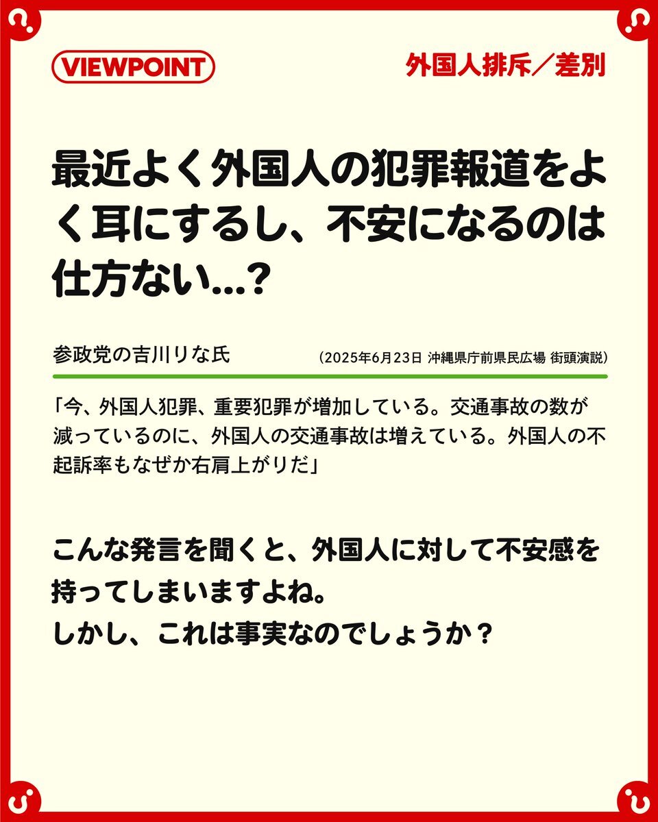 🔸 では、実際のデータはどうなっている? 🔸 🔸 最近よく外国人の犯罪報道をよく耳にするし、不安になるのは仕方ない...? 🔸 #ウワサの参政党 #参院選2025 #参政党 #選挙へ行こう pic.x.com/YNOCmsCaJl