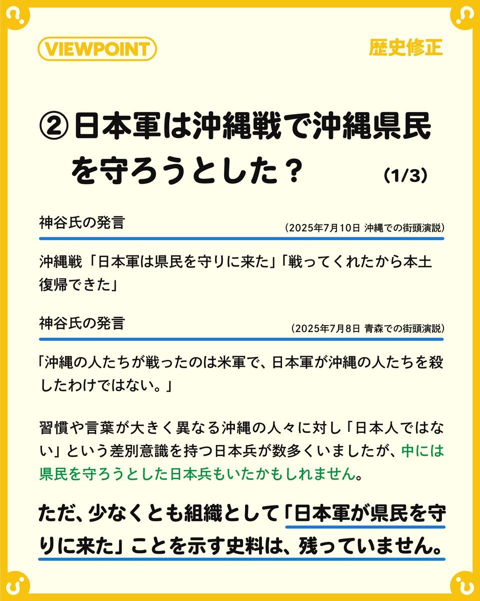 🔸② 日本軍は沖縄戦で沖縄県民を守ろうとした?🔸 #ウワサの参政党 #参院選2025 #参政党 #投票へ行こう pic.x.com/05TRZ1d6jY