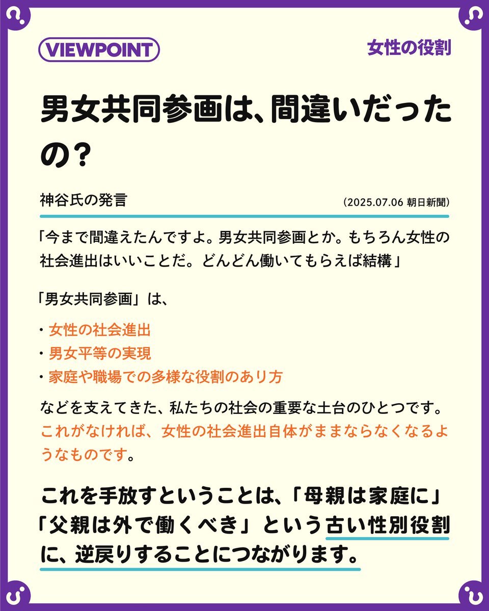 🔸ウワサの参政党🔸 〰️女性の役割〰️ #ウワサの参政党 #参院選2025 #参政党 #投票へ行こう pic.x.com/lehjm3VKtu