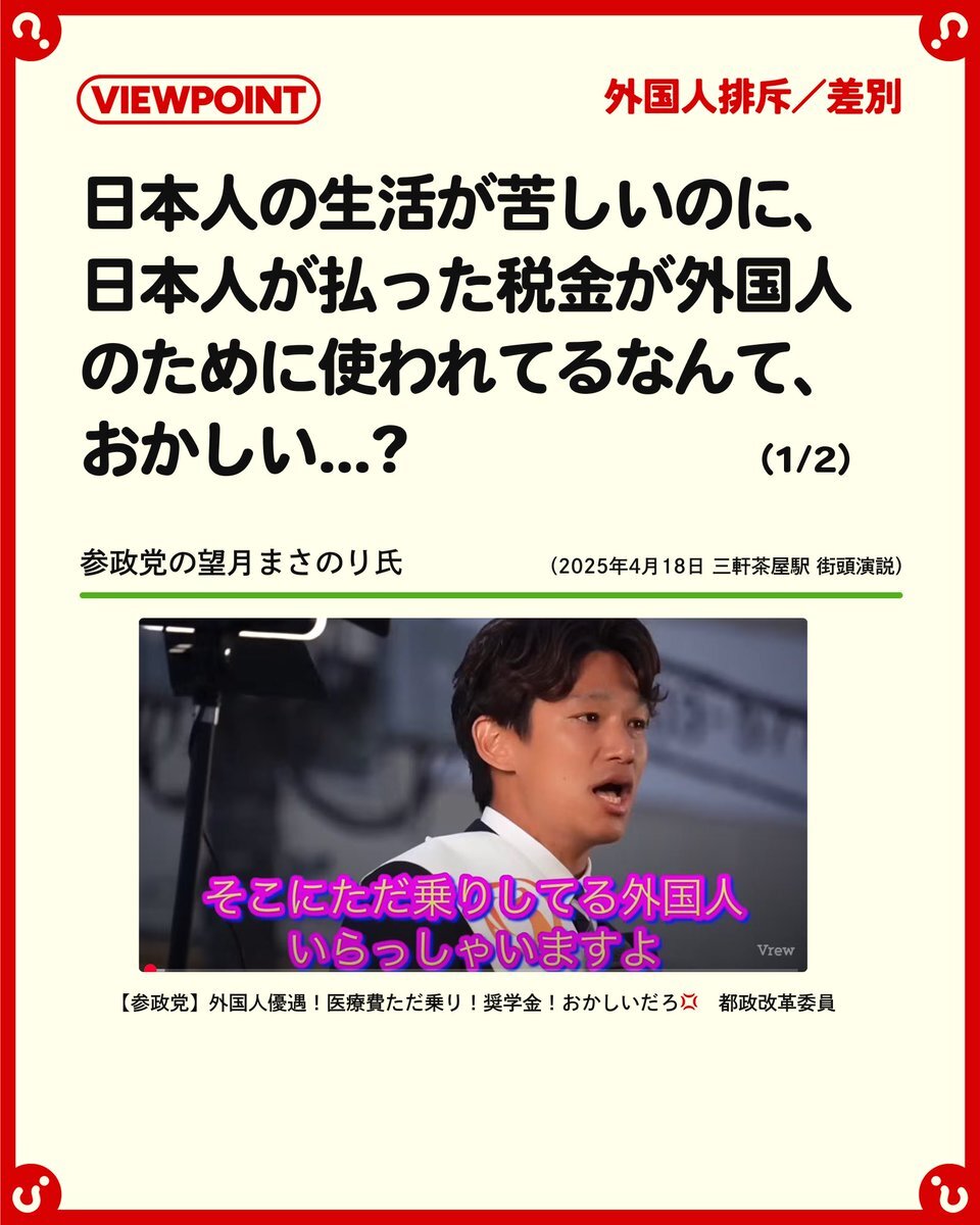 🔸ウワサの参政党🔸 〰️外国人排斥/差別〰️ #ウワサの参政党 #参院選2025 #参政党 #投票へ行こう pic.x.com/C654ETgwiT