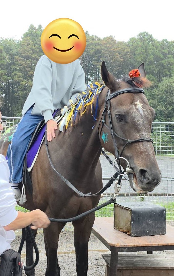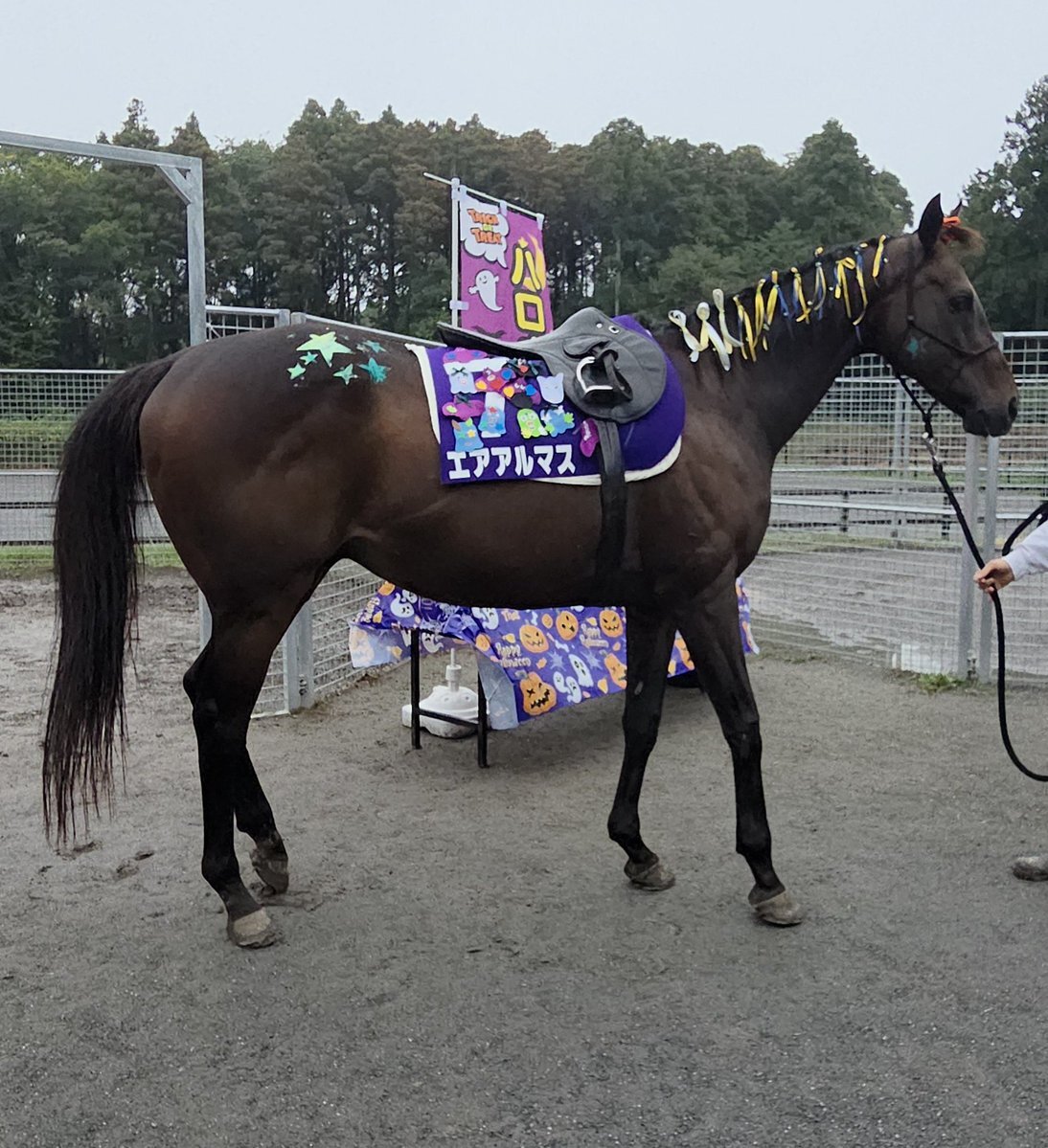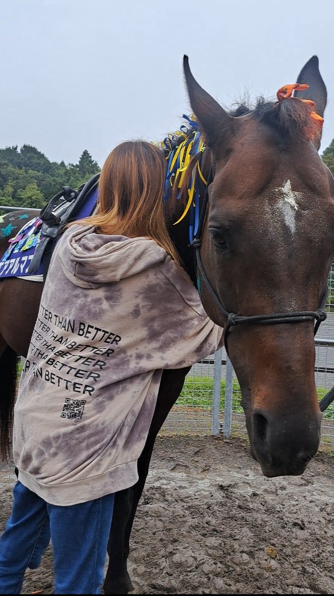 エアアルマスの背中、すごく感動した😭💕くじひいてくれてありがとうアルマス君😭ゼッケン姿かっこよすぎた😭💕 ケウちゃんはお姫様だった👸✨ 横に立ったらいつもより大きく感じた😂💕 #うまんまパーク #エアアルマス #ケウ pic.x.com/WtQTUZln7U