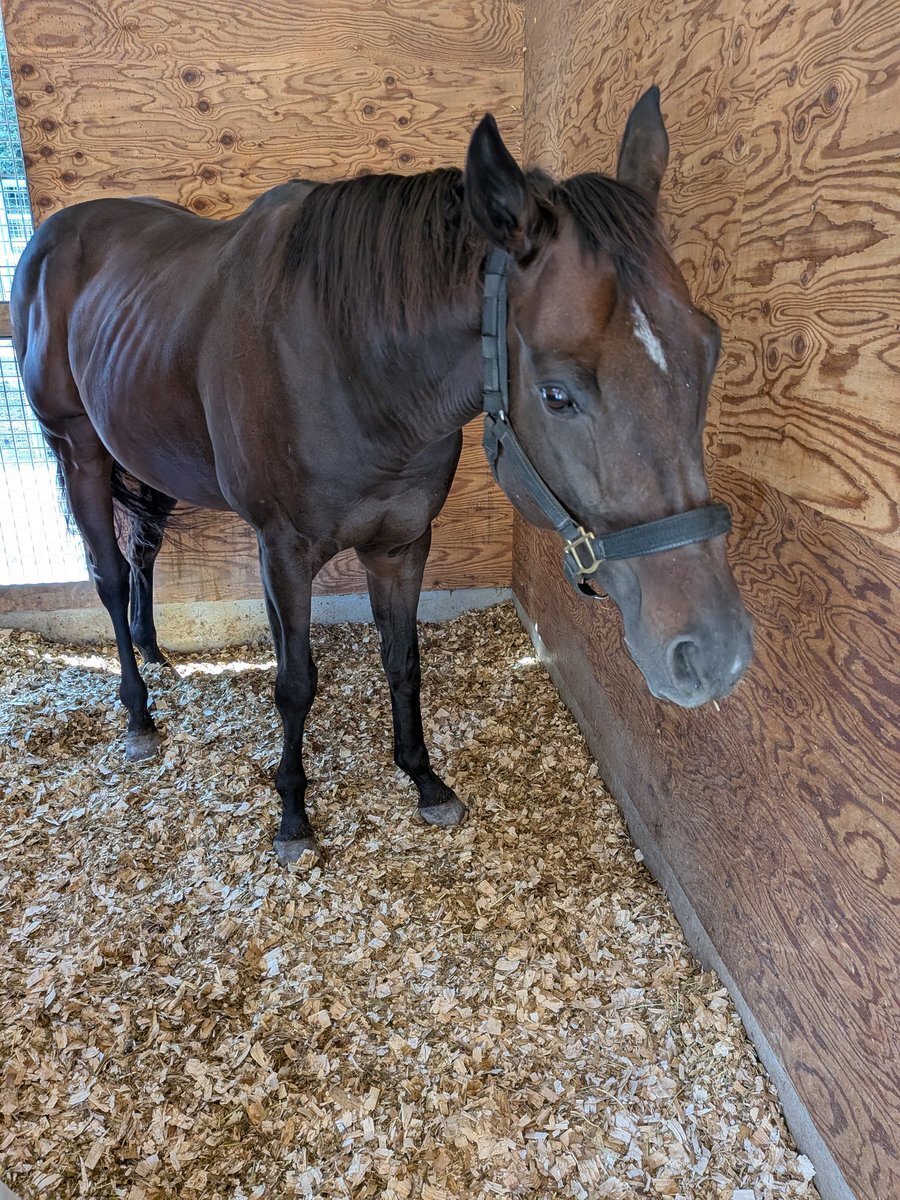 あまりにも虫が多くて馬房でお手入れすることになったエアアルマス 昨日お兄ちゃん勝ったねと言っても「シランケド?」の表情 それよりも虫が気になってちょっとテンション下がり気味 #エアアルマス pic.x.com/jzB4Fwz9Uf
