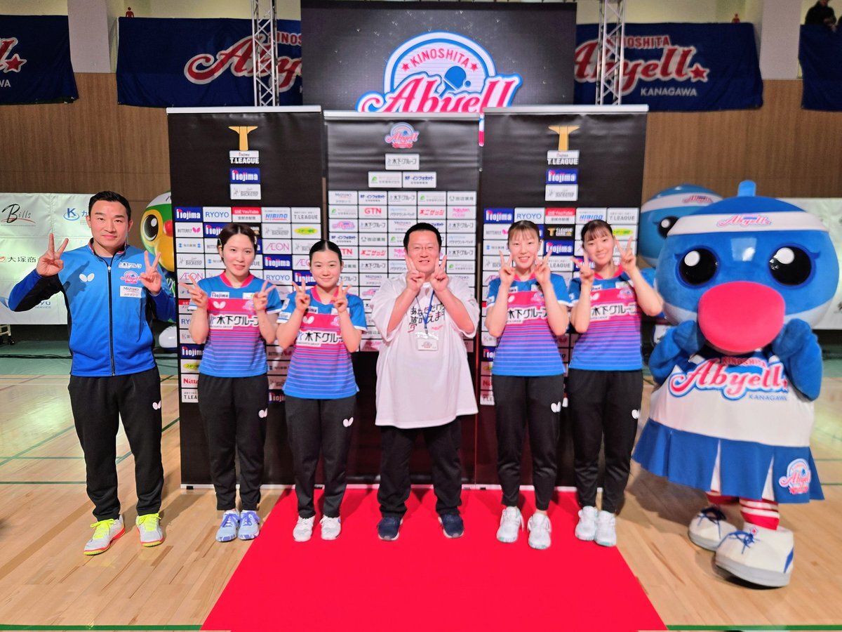11月8日(土)のTリーグ2025-2026、木下アビエル神奈川vs京都カグヤライズ戦終了後にスポンサー様の招待者特権で、選手たちと記念写真をして貰えました。 ピントが王子監督にあってるけど(笑) 家宝にします。 エアコン総本舗様、ありがとうございました。 #Tリーグ #木下アビエル神奈川 #エアコン総本舗 pic.x.com/3J1IJxA7RX