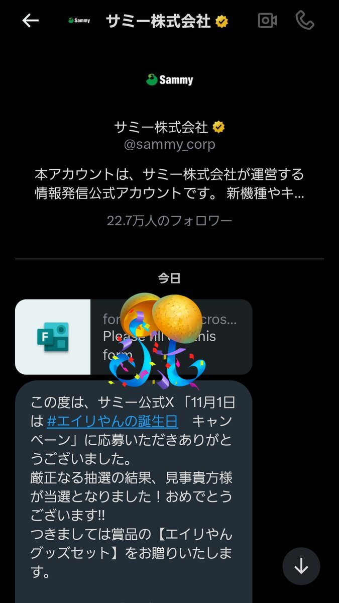 #エイリやんの誕生日 おめでとう! x.com/sammy_corp/sta…