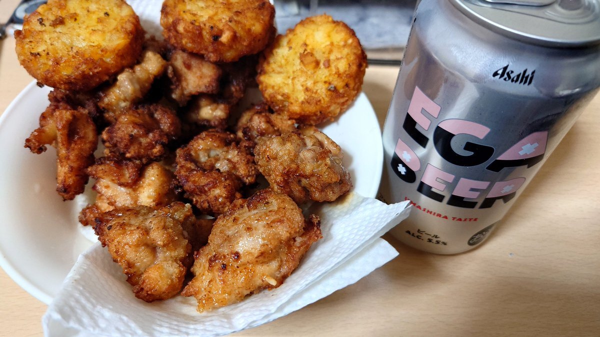 日曜日の夜は、手づくり唐揚げとEGABEER(エガビア)🍺 苦みとコクがあって、なおかつキレが良い。 スーパードライより好きかも。 #エガビア #EGABEER #エガちゃんねる pic.x.com/EPKyn3l6Pu