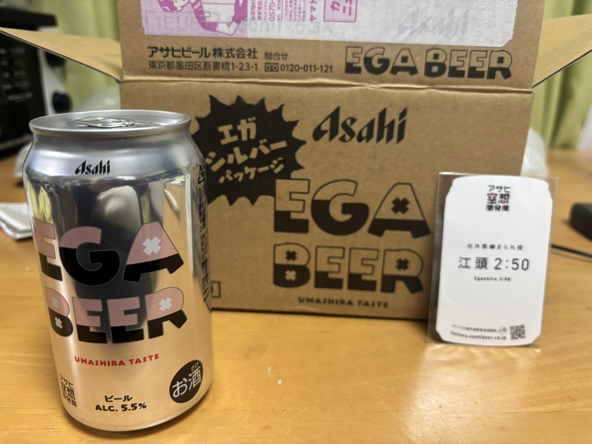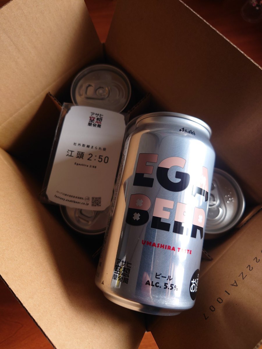 エガちゃんねる×アサヒビール🍺=エガビア 注文した翌日にアサヒさんのサイトがサイバー攻撃に遭い長らく出荷停止になっていたエガビア無事に着弾😎 味は心配してないけど、個人情報の漏洩はちょっと心配😰 #エガちゃんねる #エガビア #EGABEER pic.x.com/Hq80X6vhbk