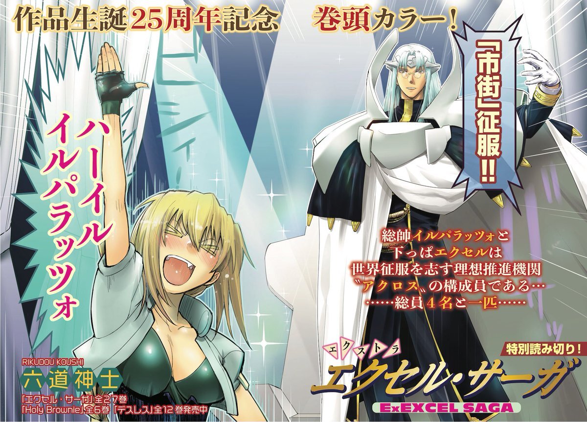 山田たえが覚醒して、「どうも山田です。ハ◯ル、イルパラッツォ!」と叫んだ時は驚愕しました。 あとロメロと一緒に非常食のメンチも登場して、エイリアンをなぎ倒すシーン最高でした! #ゾンビランドサガ #エクセル・サーガ x.com/rikudou_koushi…