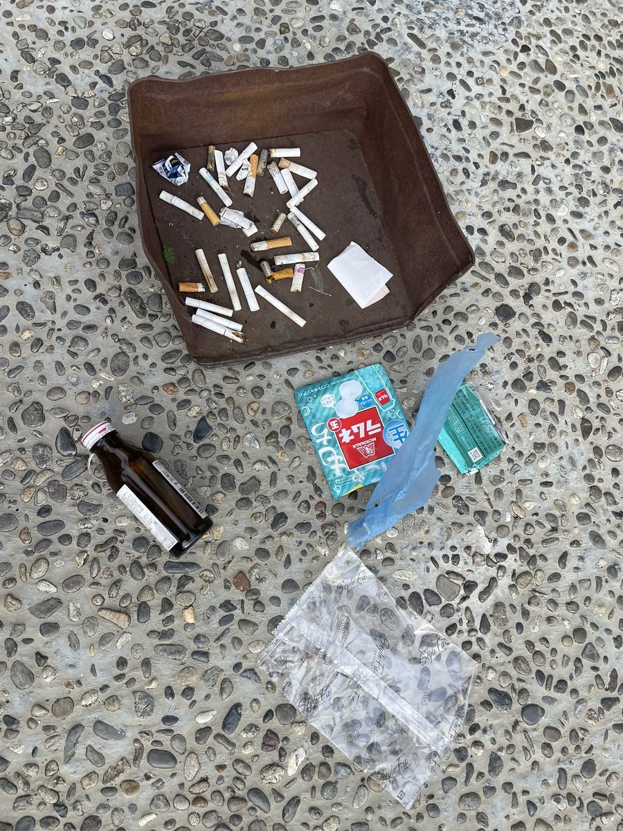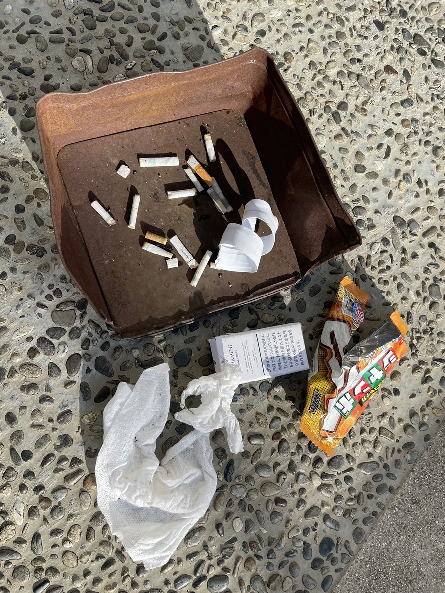 本日のポイ捨てバスターズ! 本日の収穫。。。 今日は、朝からヘルピー! 茶室横のお庭のお掃除です。センスが問われるねー #共栄設備工業所 #リフォーム #増改築 #水道工事 #寝屋川市 #大工工事 #エコ仮面 #ポイ捨て #ヘルピー pic.x.com/BQVUD2XopJ