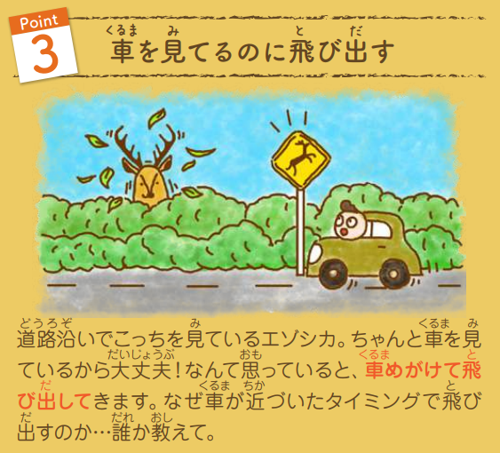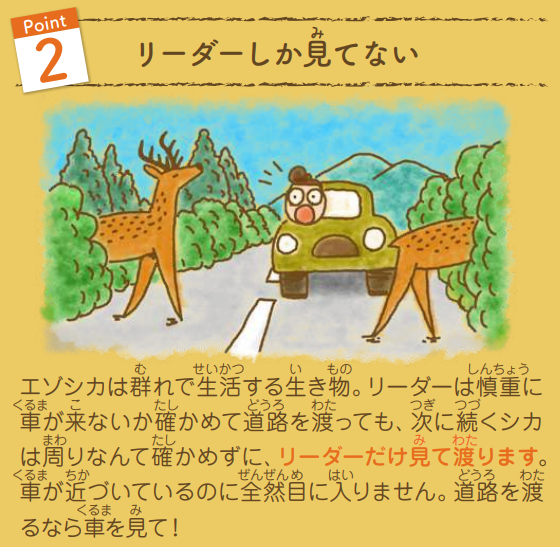 エゾシカは、道路脇から突然飛び出してきます 車を見ていても飛び出します ポイント4点をお伝えしますので シカの特性を知って、事故を未然に防ぎましょう! #鹿 #シカ事故 #エゾシカ パンフレットはこちら hkd.mlit.go.jp/sp/douro_keika… pic.x.com/uhn3NweIws