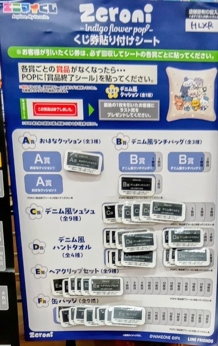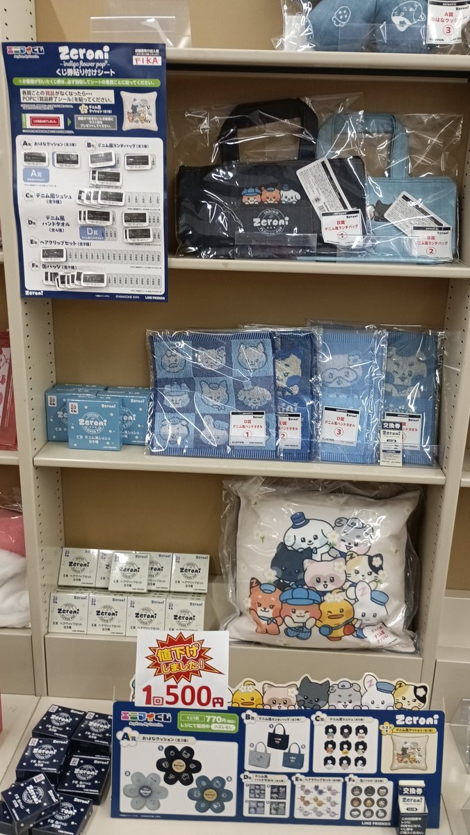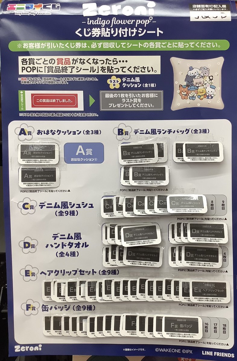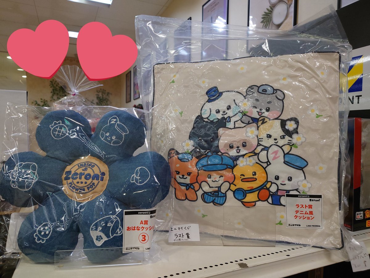 📢【お安くなりました✨️】 #エニマイくじ 『Zeroni -indigo flower pop-』 🌟税込770円➡️税込500円🌟 残り2️⃣2️⃣回です☺️🎯 A賞は「おはなクッション」🌼 ラストワン賞は「デニム風クッション」です🎶 ご来店お待ちしております🥳‼️ pic.x.com/WwaqsUGwuu