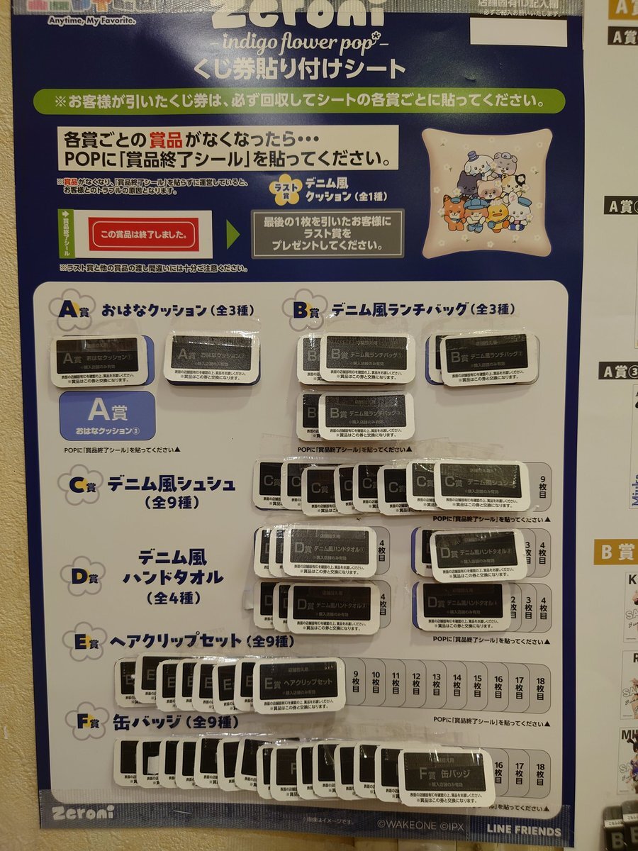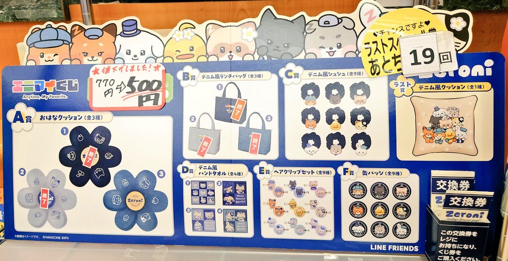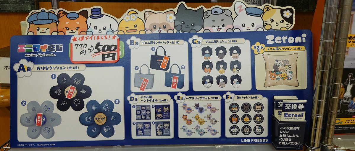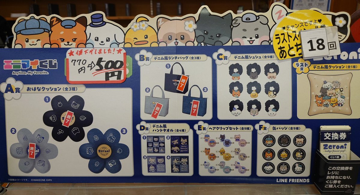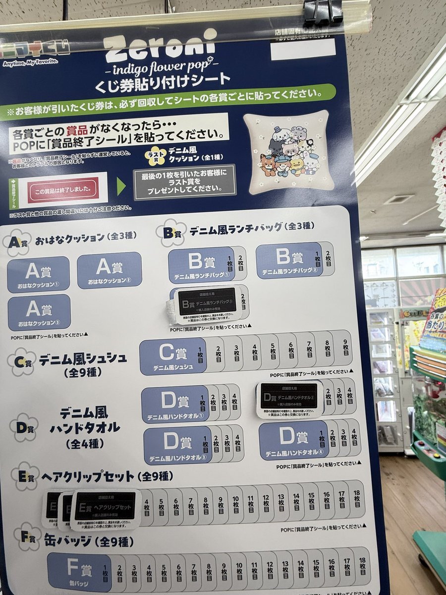 📢【お安くなりました✨️】 #エニマイくじ 『Zeroni -indigo flower pop-』 🌟税込770円➡️税込500円🌟 残り2️⃣2️⃣回です☺️🎯 A賞は「おはなクッション」🌼 ラストワン賞は「デニム風クッション」です🎶 ご来店お待ちしております🥳‼️ pic.x.com/WwaqsUGwuu