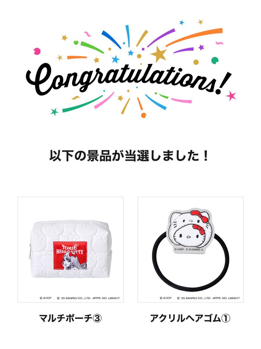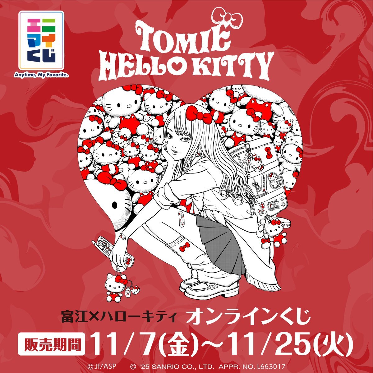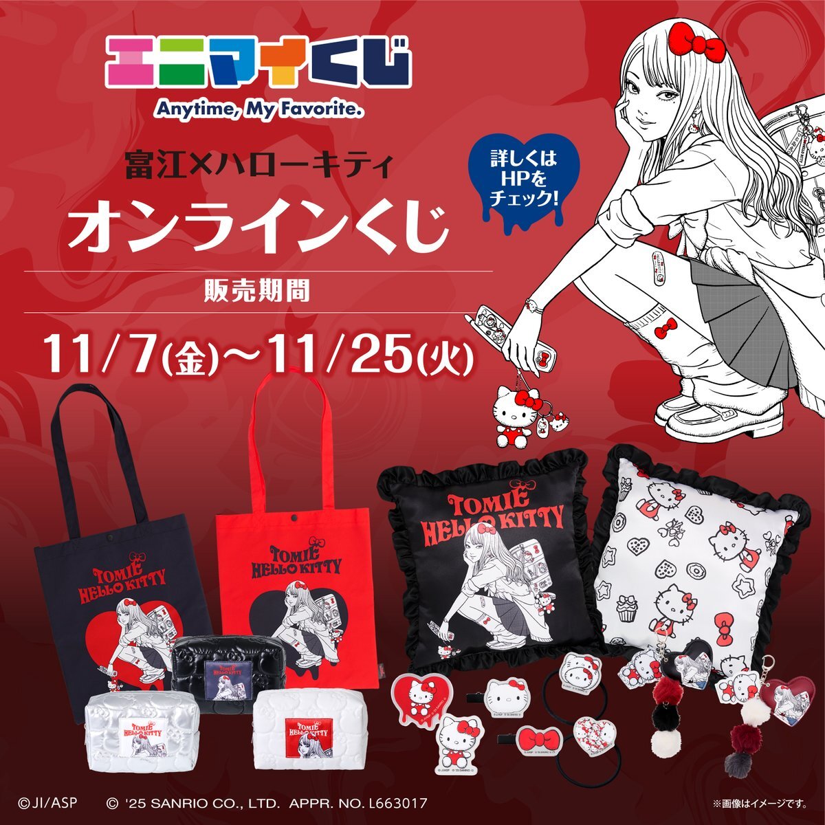 \🎀本日発売🎀/ 『 #富江 × #ハローキティ 』くじ🎯 ギャル富江のくじが #エニマイくじ 公式オンラインにて販売開始❣️ 妖しくも可愛い💓イラストを使ったアイテムがいっぱい…✨ 11/25(火)までなので、ぜひお見逃しなく👀 ⬇️詳細はこちら anymy.jp/kuji/projects/… pic.x.com/yfACq0FPW5