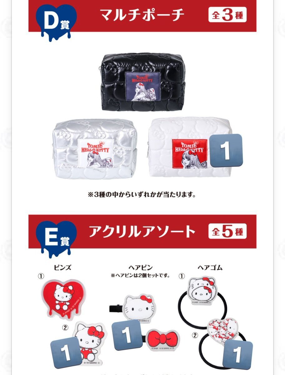 \🎀好評販売中🎀/ 『 #富江 × #ハローキティ 』くじ🎯 #エニマイくじ 公式オンラインにて、11/25(火)まで販売中です❣️ #伊藤潤二 先生によるギャル富江のイラストを使用した ダークでおしゃれなアイテムがたくさん…✨ この機会をぜひお見逃しなく👀💖 ⬇️詳細はこちら anymy.jp/kuji/projects/… pic.x.com/xuBfepg9qF