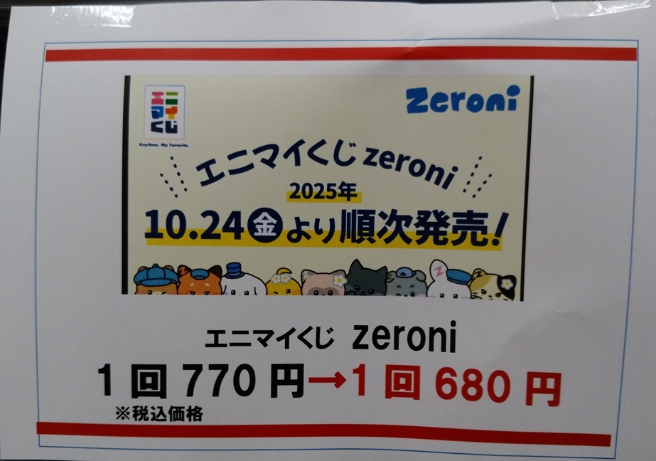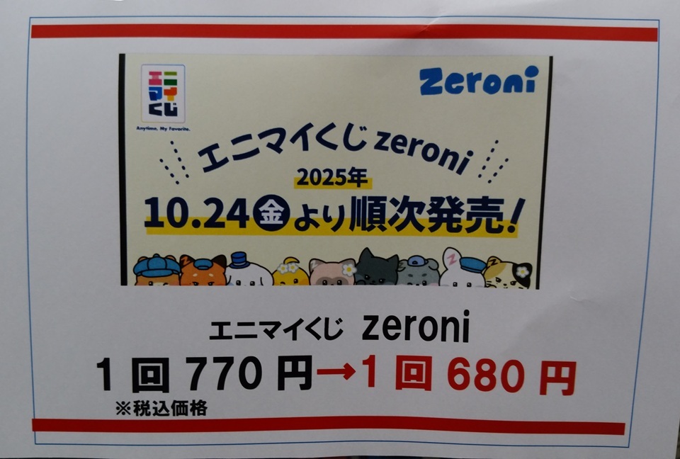 ⬇️値下げ販売中です⬇️ 砺波地区は当店のみ #エニマイくじ #zeroni 1回 770円→680円です 残り18回です(回数制限はありません) ▼詳細はこちら anymy.jp/kuji/projects/… #ZEROBASEONE #ZB1 #砺波 #BM砺波くじ pic.x.com/P5OAD27zzg