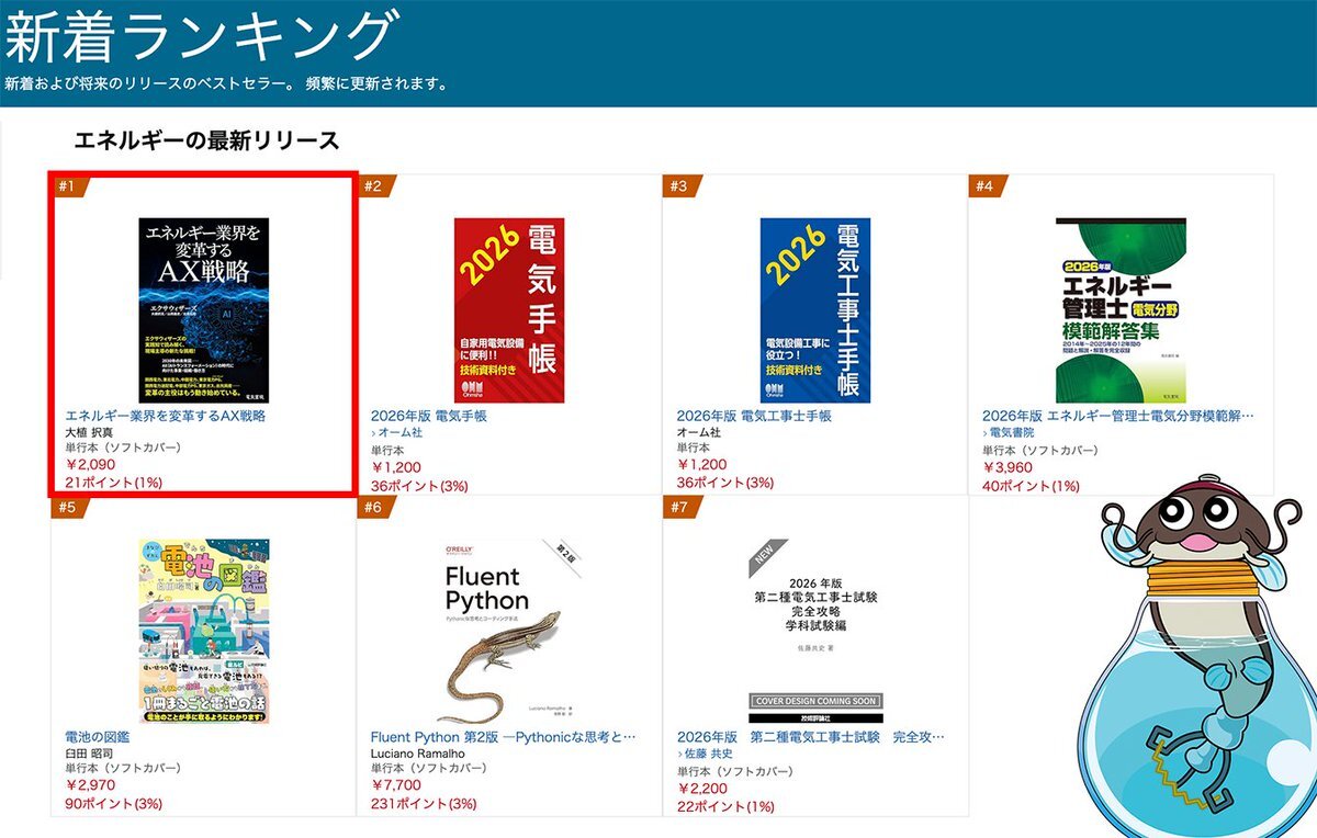 【ランキング1位獲得👑】 弊社の新刊「エネルギー業界を変革するAX戦略」がAmazonの最新リリース(エネルギー部門)で1位を獲得しました!ありがとうございます。 発売は12/19(金)を予定していますが、気になる方はこちらからご予約が可能です📚 👉amzn.asia/d/3HcxZM3
