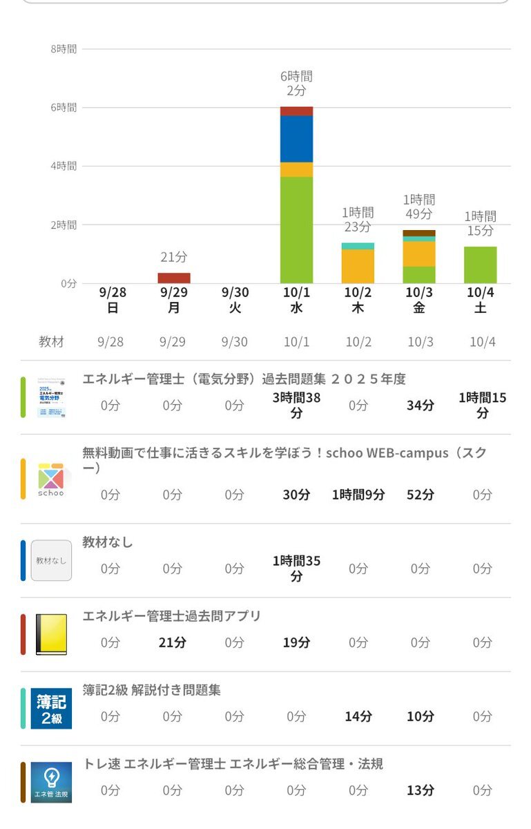 2025.10.1 今日は移動時間を有効に使ってがっつり勉強できた トータル6時間 簿記とエネ管両方頑張る! #勉強記録 #勉強垢さんと繋がりたい #勉強ブログ #Schoo #エネルギー管理士 #簿記