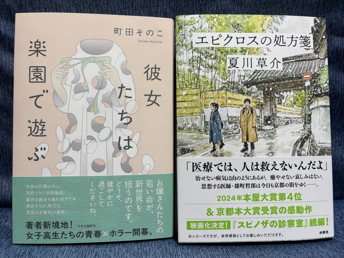 #今日買った・届いた本を紹介する また買ってしまった😅💦 #エピクロスの処方箋 #夏川草介 最近Xでもよく見かける、 『スピノザの診察室』の続編ですね✨✨ それと、 #彼女たちは楽園で遊ぶ #町田そのこ 著者新境地のホラーとのことで 楽しみです☺️✨✨✨ pic.x.com/muobvhNPCv