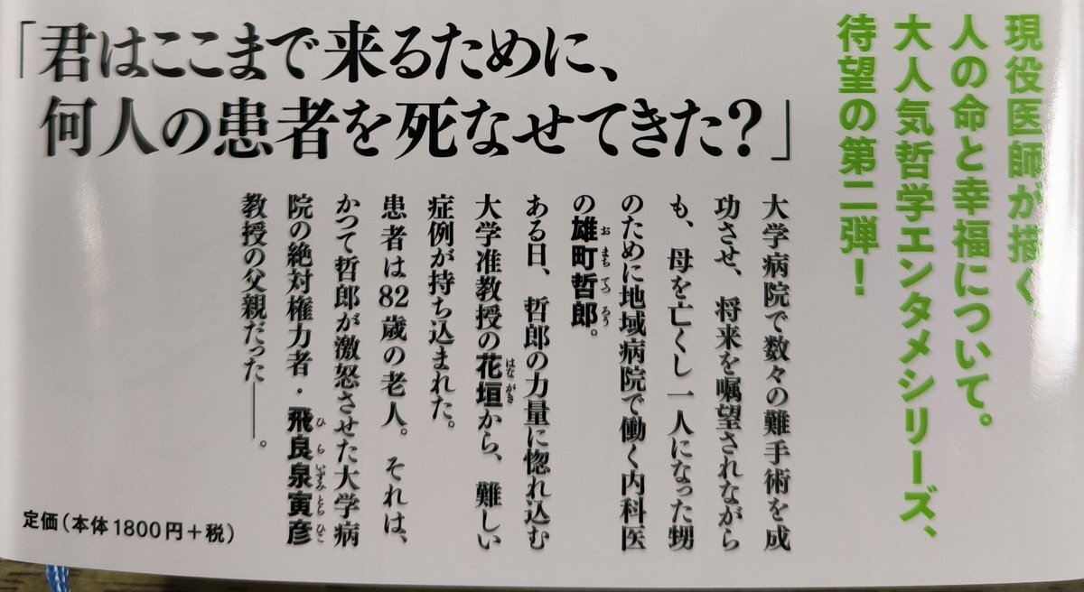 #エピクロスの処方箋 #夏川草介 「本当に大切なのは、目の前にいる人が今を笑顔で過ごせるということだよ」「今の時間を大切にしたい」待ちに待ったスピノザの続編、この澄んだ空気感は相変わらず心地よい。原田病院に勤務する雄町哲郎、今回は大学病院も巻き込んで話が展開していきます。#読了 pic.x.com/WPvLngco8A