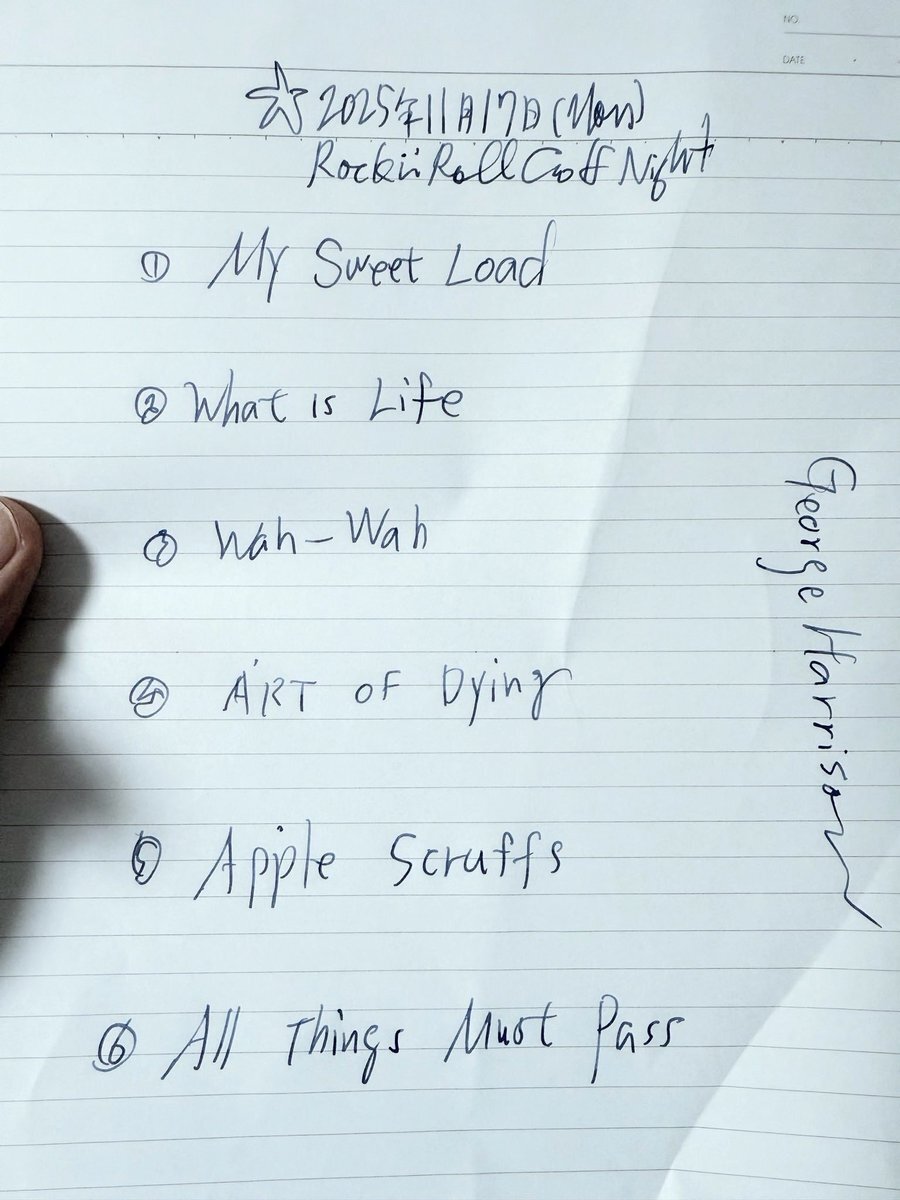 オンエアリスト♬.*゚ 本日の放送もお聴き頂きありがとうございました😊 George Harrison特集いかがでしたか❓ #エフエムさがみ #FMHOT839 #ロックンロールゴルフナイト 素敵な1週間をお過ごしください✨ pic.x.com/I549Ut7T0Z