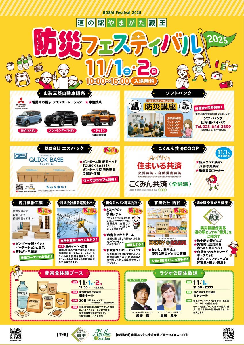 【11月1日(土)11時〜12時55分までエフエム山形で生放送🎉】 道の駅やまがた蔵王での防災フェスはラジオの生放送付き。 当社は11時35分前後に登場予定! 雨だからこそ、室内のイベントで 思いっきり楽しみませんか? お待ちしております😀 #エフエム山形 #道の駅やまがた蔵王 #イベント情報 pic.x.com/Afq7rBQVGW