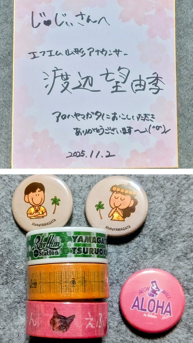 11/2(日)の【Aloha YAMAGATA in イオンモール山形南】(振り返り) みゆっきーさんは想像してたよりも更に華奢で綺麗で素敵な方でした✨ ちゃっかりサインも(*´艸`*) rhythmstationとミラちゃんマステとガチャのバッヂも(*´艸`*) #alohayamagata #エフエム山形 #rhythm_station #渡辺望由季 pic.x.com/cM0OfvEvA9