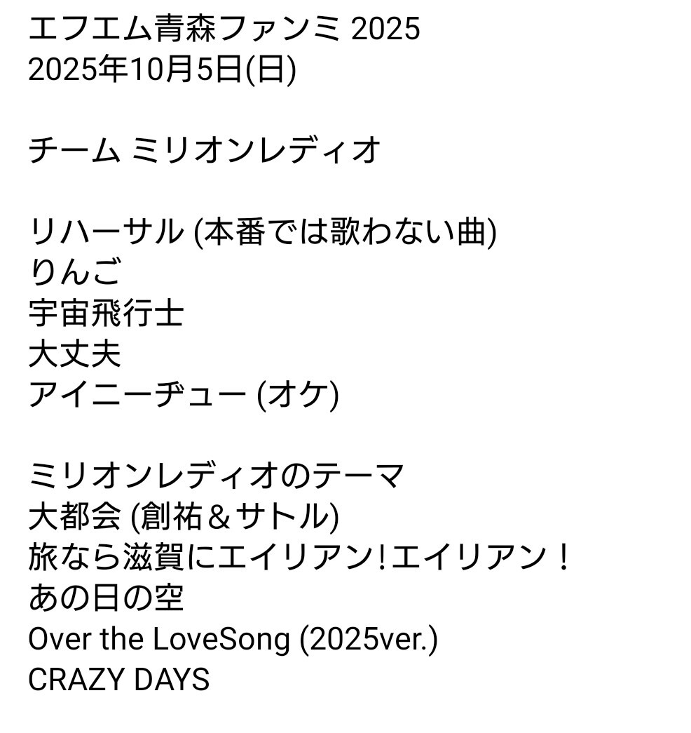 問題の【大都会】音源🤩 🤣🤣🤣🤣🤣 確かに、サトルさんの悪い癖がでちゃってますね!真面目な所が🤭 その上、創祐さんの『皆さんご一緒に!』って、これは歌えませんよ😅 こりゃ… 圧巻のステージにお客さんも『スン』 ってなってしまいますね😂 #ミリオンレディオ #エフエム青森ファンミ