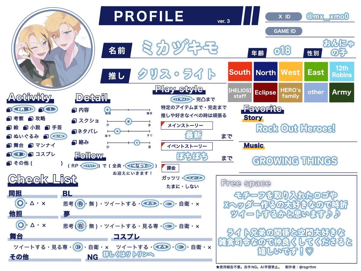 #エリオスR好きさんと繋がりたい #エリオスR好きな人と繋がりたい #エリオスR絵描きさんと繋がりたい 🍺推し司令です〜 誤反応防止のためRT中心に♡も回ります ステの話したり、イベストやらメインの話したりやらと色々雑多です よろしくお願いします〜!🙇♂️ pic.x.com/4EALqodNTa